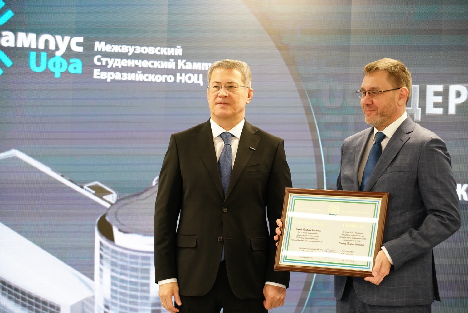 Радий Хабиров наградил Почетной грамотой РБ гендиректора ООО «Эталонные концессии» Алана Бугулова, гендиректора ООО «Кампус» Сергея Гладких, замгендиректора ООО «Эталонные концессии» Валерия Ерёмина, руководителя ООО «УралСтройЭнерго» Антона Колпакова, руководителя ПСК «Аналитика» Фарита Лукманова, гендиректора НКО Фонд реализации инфраструктурных и социальных проектов РБ Андрея Старикова. Замминистра строительства и архитектуры РБ Чингис Хасанов удостоился звания «Заслуженный строитель Республики Башкортостан».