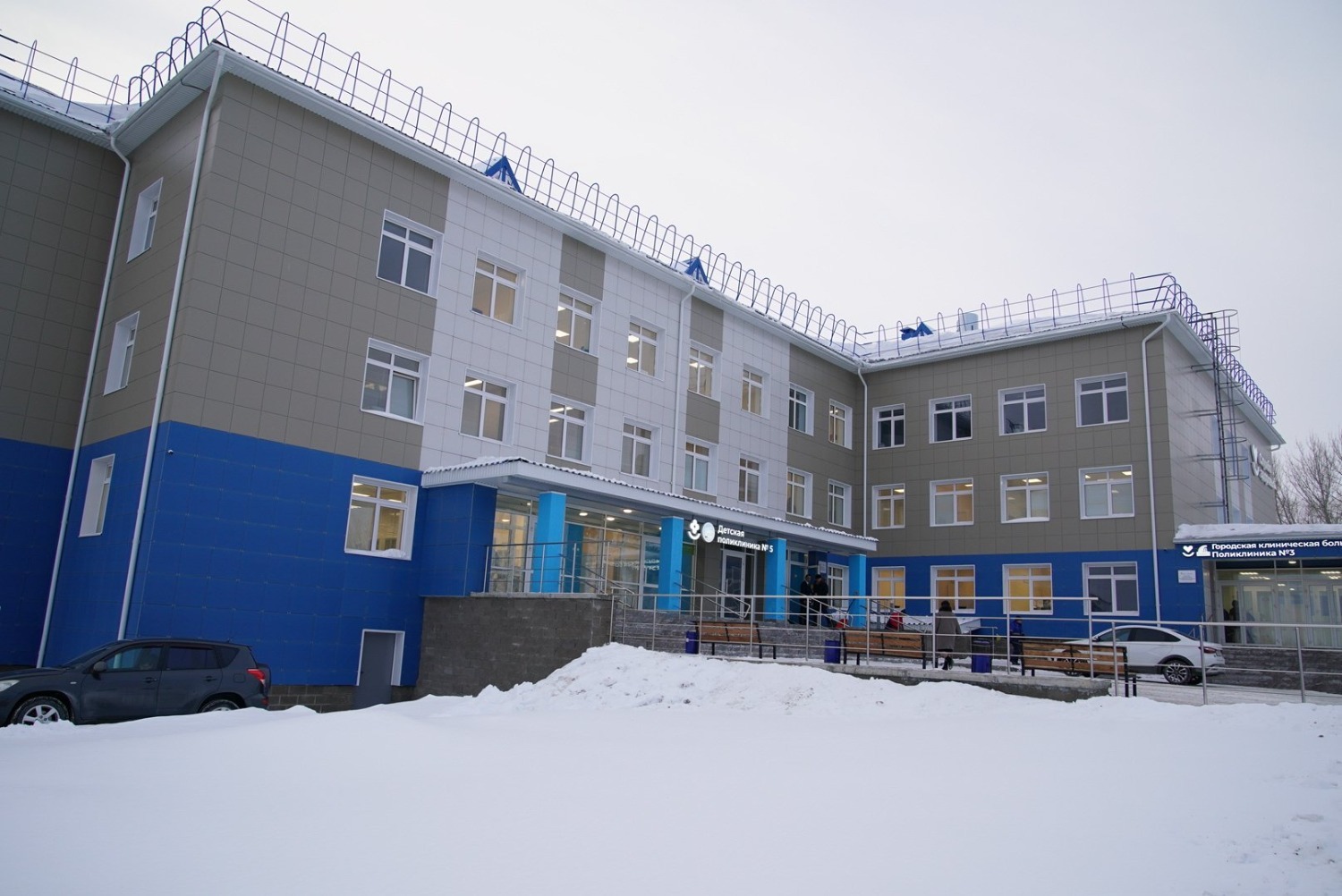 Трехэтажное здание поликлиники оснащено всем необходимым оборудованием для обследования и оказания первичной медико-санитарной помощи детям, в том числе младенцам, а также взрослому населению.