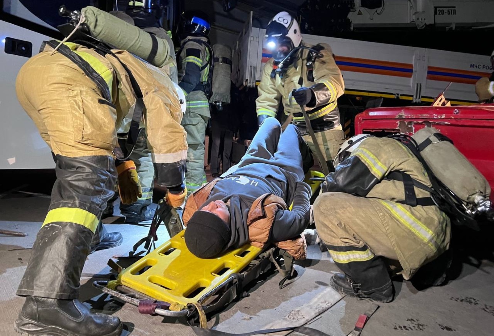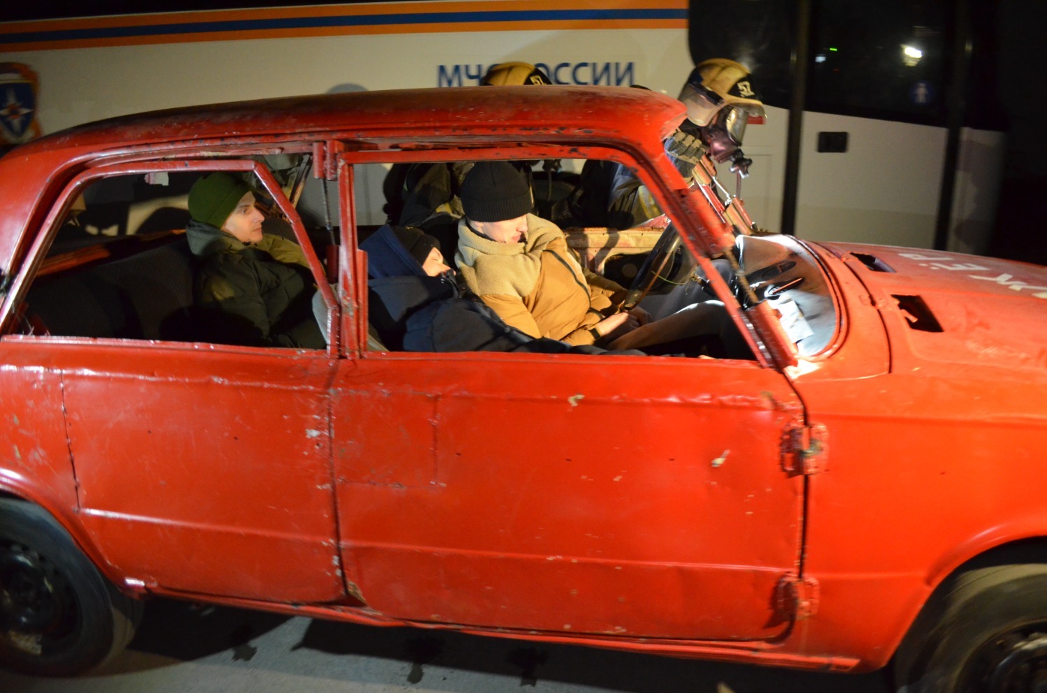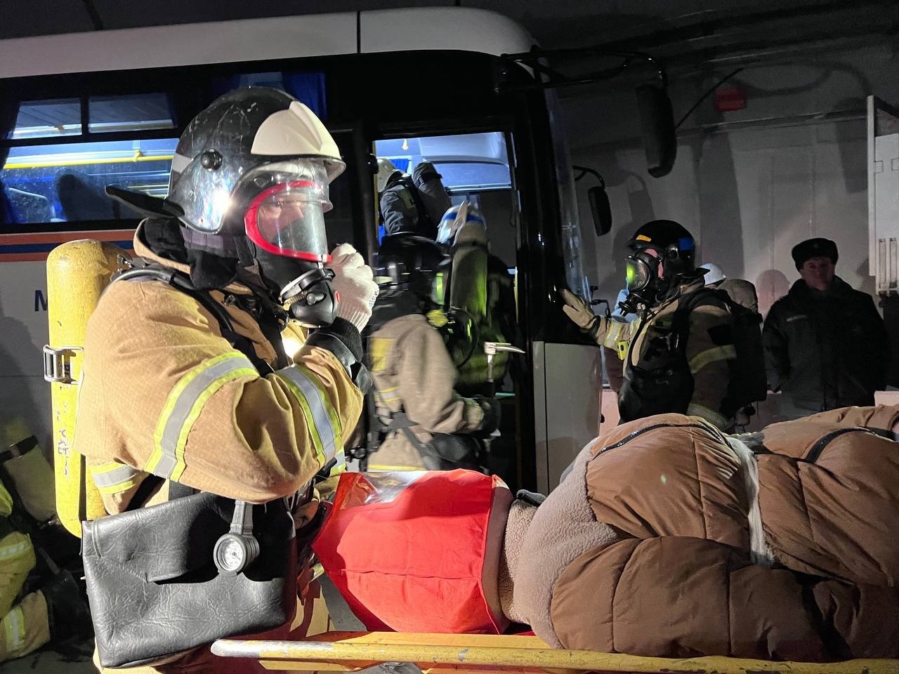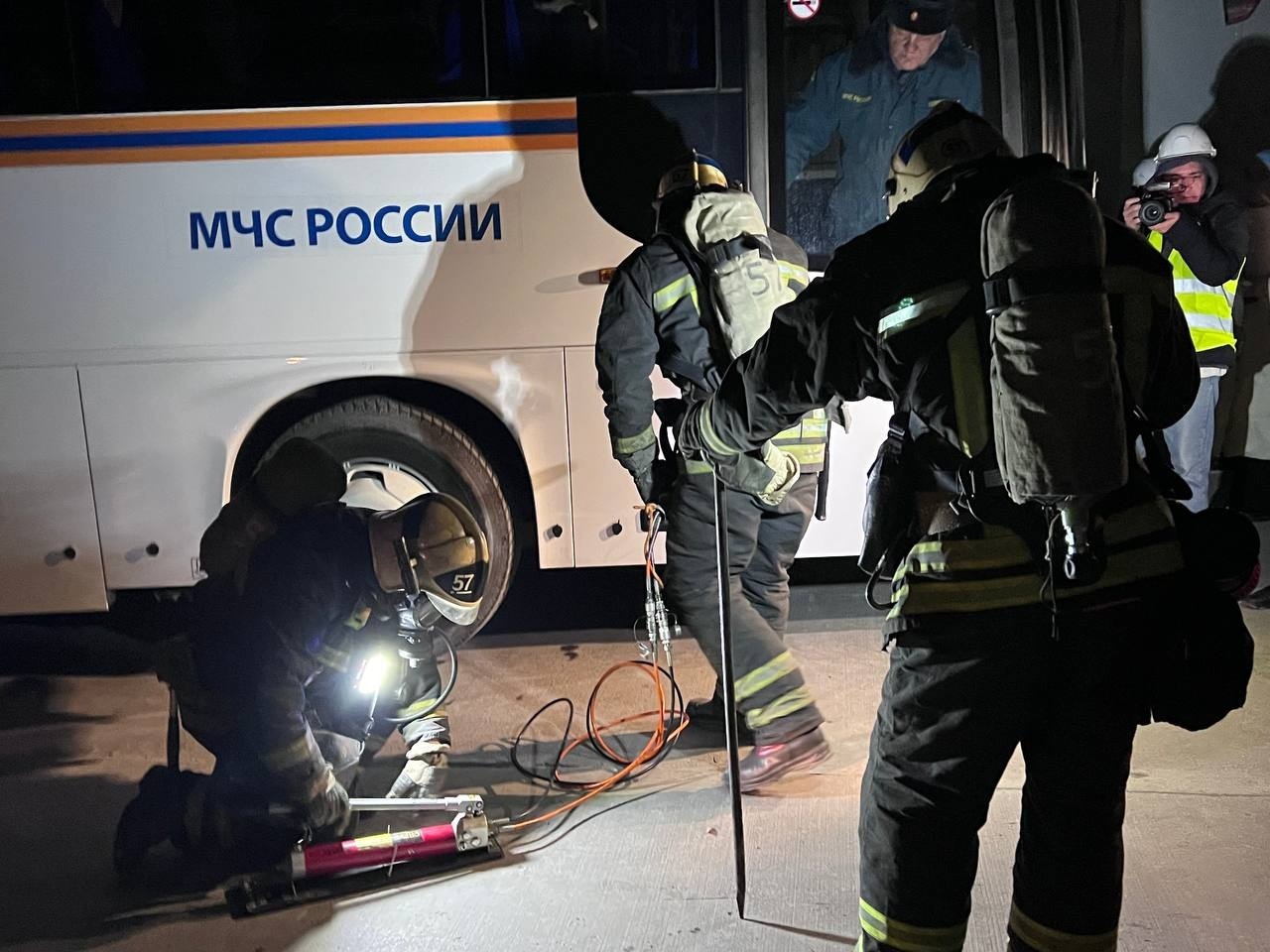 По легенде, в центральной части тоннеля столкнулись легковой и грузовой автомобили, а также рейсовый автобус. Произошел розлив топлива, возник пожар. Еще одно ДТП случилось в другой части тоннеля - загорелся легковой автомобиль. В автобусе «в ловушке» оказались 31 человек. В легковых и грузовых машинах зажало пятерых человек – все без сознания.
