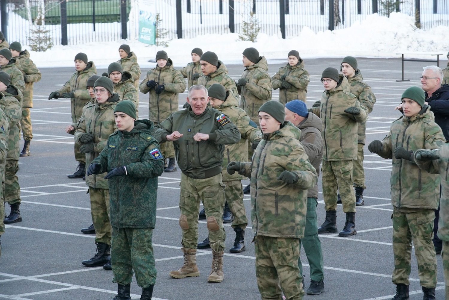 После этого юные курсанты приняли участие в утренней зарядке вместе с Радием Хабировым, отцом Максима Серафимова Владимиром Серафимовым, четырёхкратным победителем турнира «Самый сильный человек России» Эльбрусом Нигматуллиным, легендарным следователем по особо важным делам Следственного комитета по Республике Башкортостан, ветераном афганской войны Виктором Гурьевым, автором и исполнителем песен Рамилем Бадамшиным, капитаном хоккейного клуба «Салават Юлаев» Григорием Паниным, бойцом смешанных единоборств, депутатом Государственного Собрания Джеффом Монсоном и ветераном афганской войны, воином-интернационалистом Дмитрием Глушко.