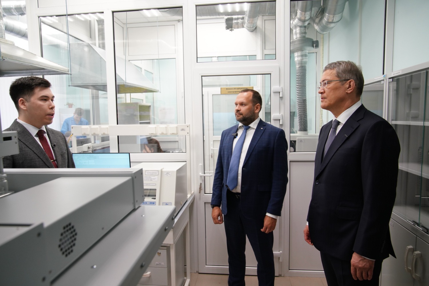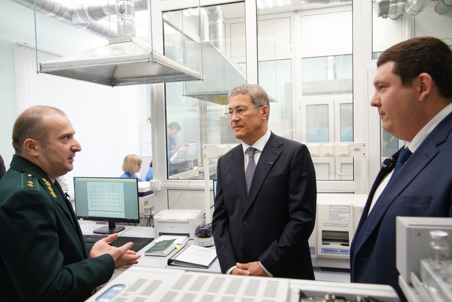 Глава республики осмотрел лабораторию Центра лабораторного анализа и технических измерений по РБ. Там проводятся исследования и анализы компонентов окружающей среды, в том числе почвы и воды. Лаборатория оснащена всем необходимым оборудованием, которое на 95% отечественного производства и приобретено за счет федеральных субсидий.