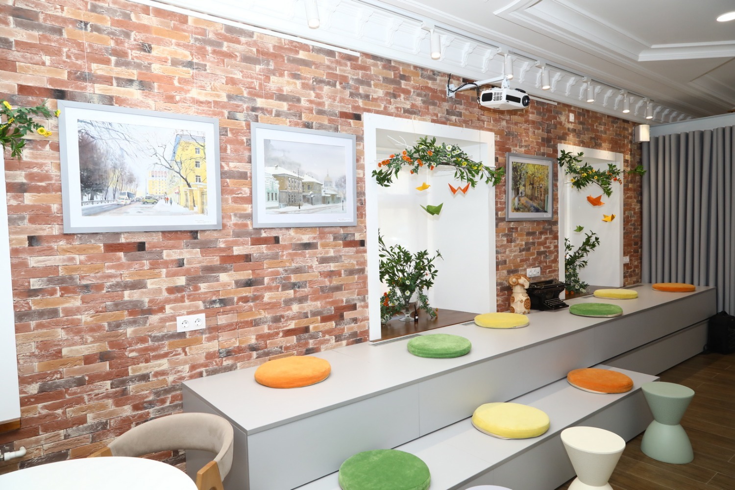 В этот же день внутри «РяДом» открылась выставка работ уфимских художников, посвященная столице Башкирии и приуроченная к открытию арт-объекта. Семь мастеров кисти и красок - Алия Нияскулова, Олеся Сапожкова, Джамиль Ахметгалиев, Ильгиз Насибуллин, Артур Василов, Альберт Хабибуллин и Рушания Бадретдинова предоставили свои работы для выставки, инициированной фондом «Территория счастья».