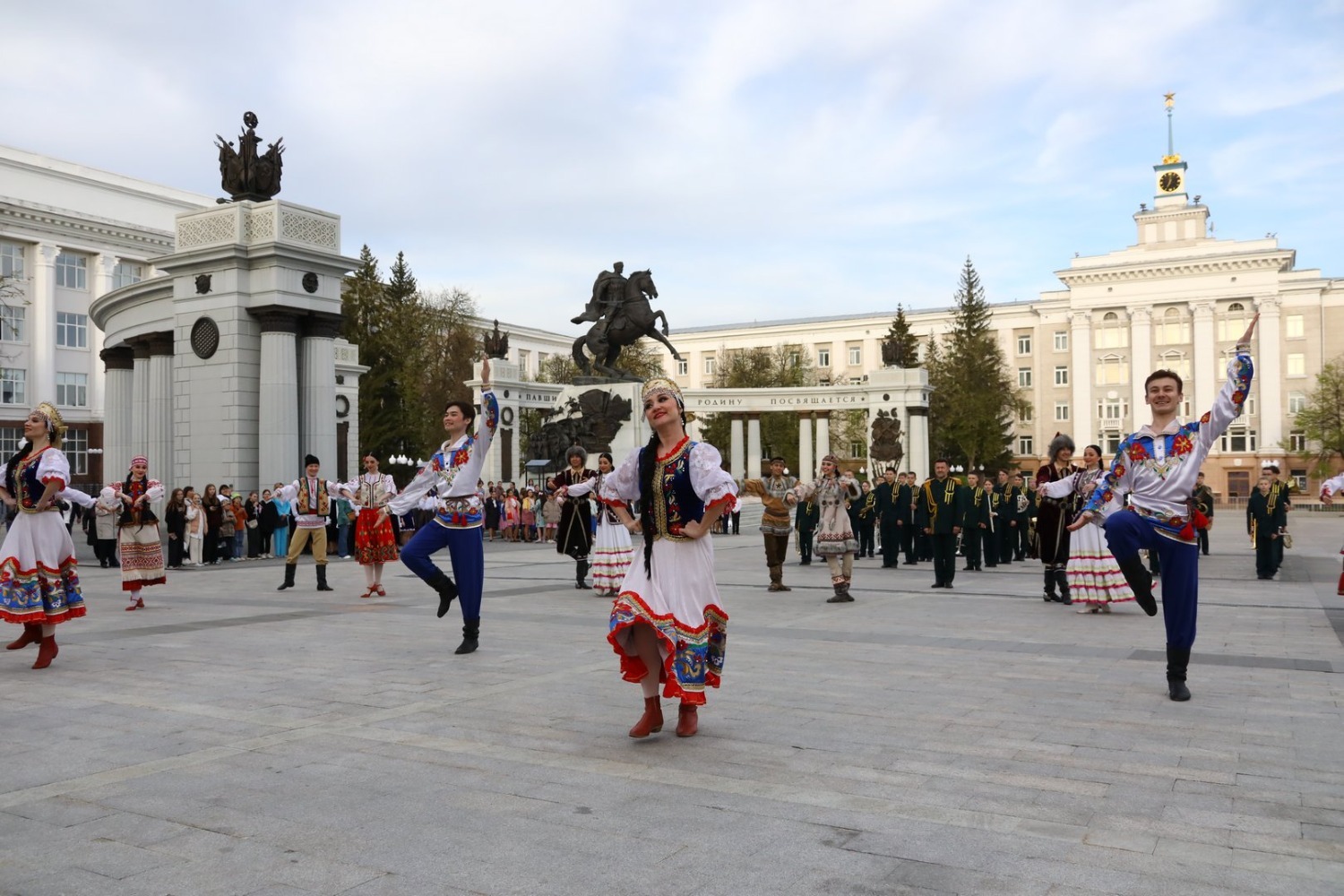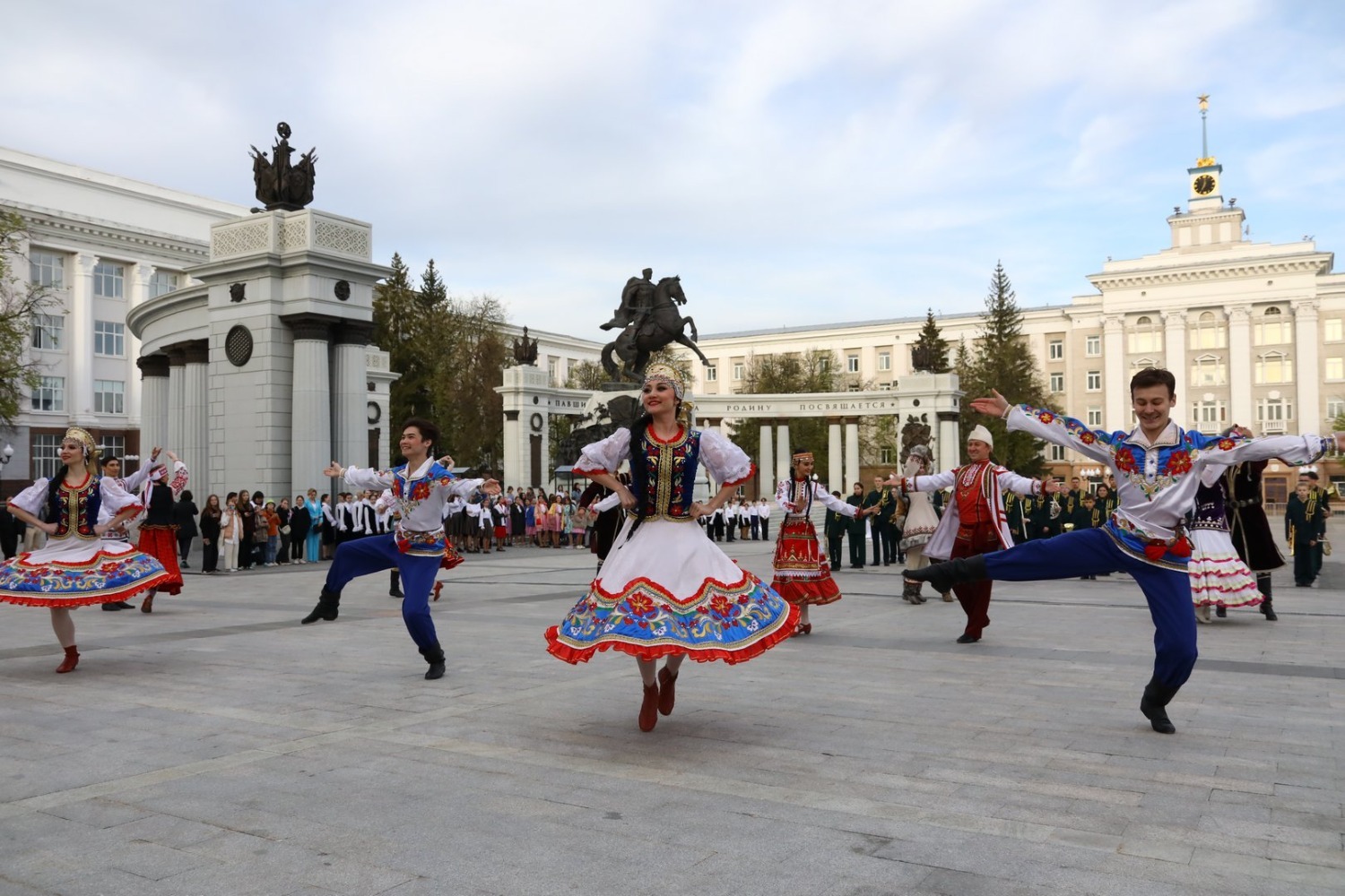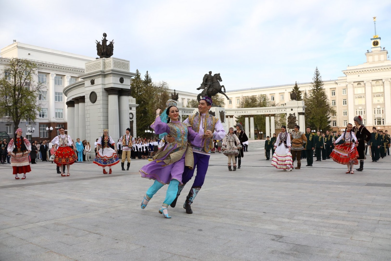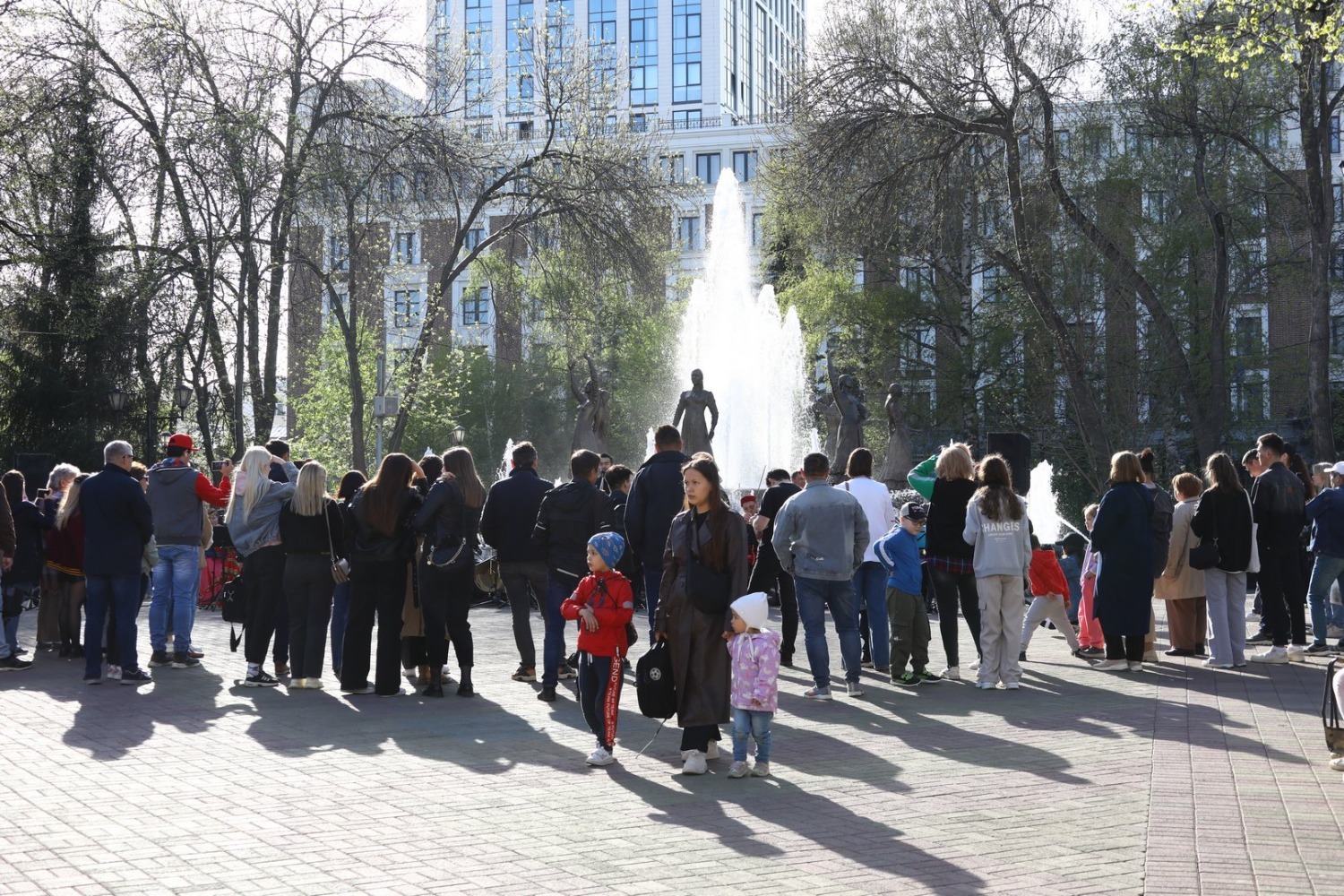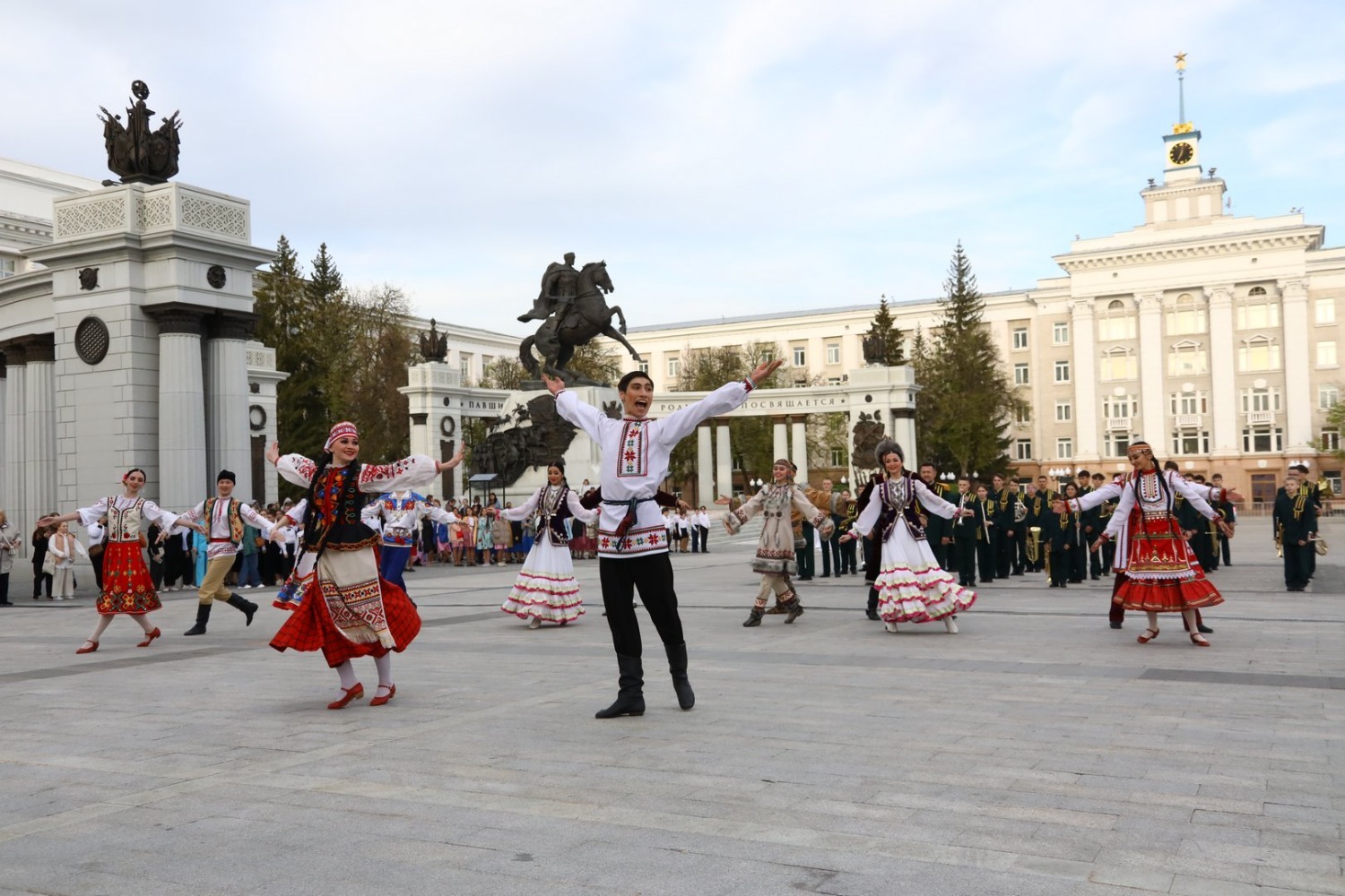 В Театральном сквере горожане с удовольствием наблюдали за ожившими персонажами фонтана. Легендарный танец «Семь девушек» представили артистки ансамбля народного танца «Талария» Торгово-экономического колледжа (руководитель Илюза Нугманова). Своими музыкальными номерами порадовали артисты оркестра народных инструментов ансамбля народного танца и песни «Мирас» Уфы.