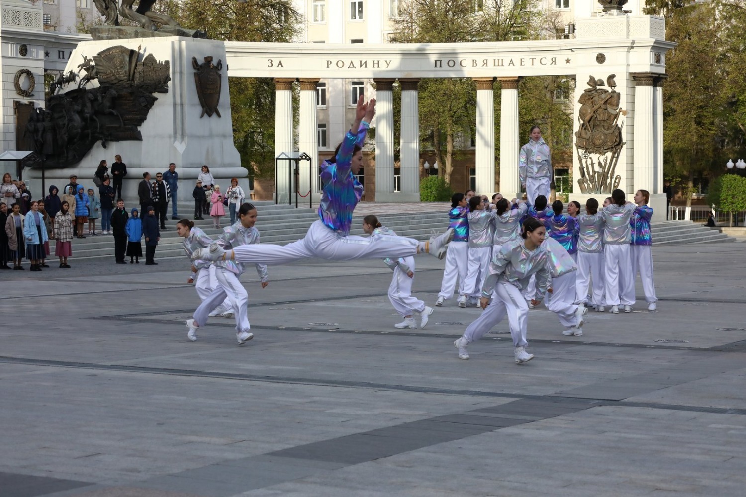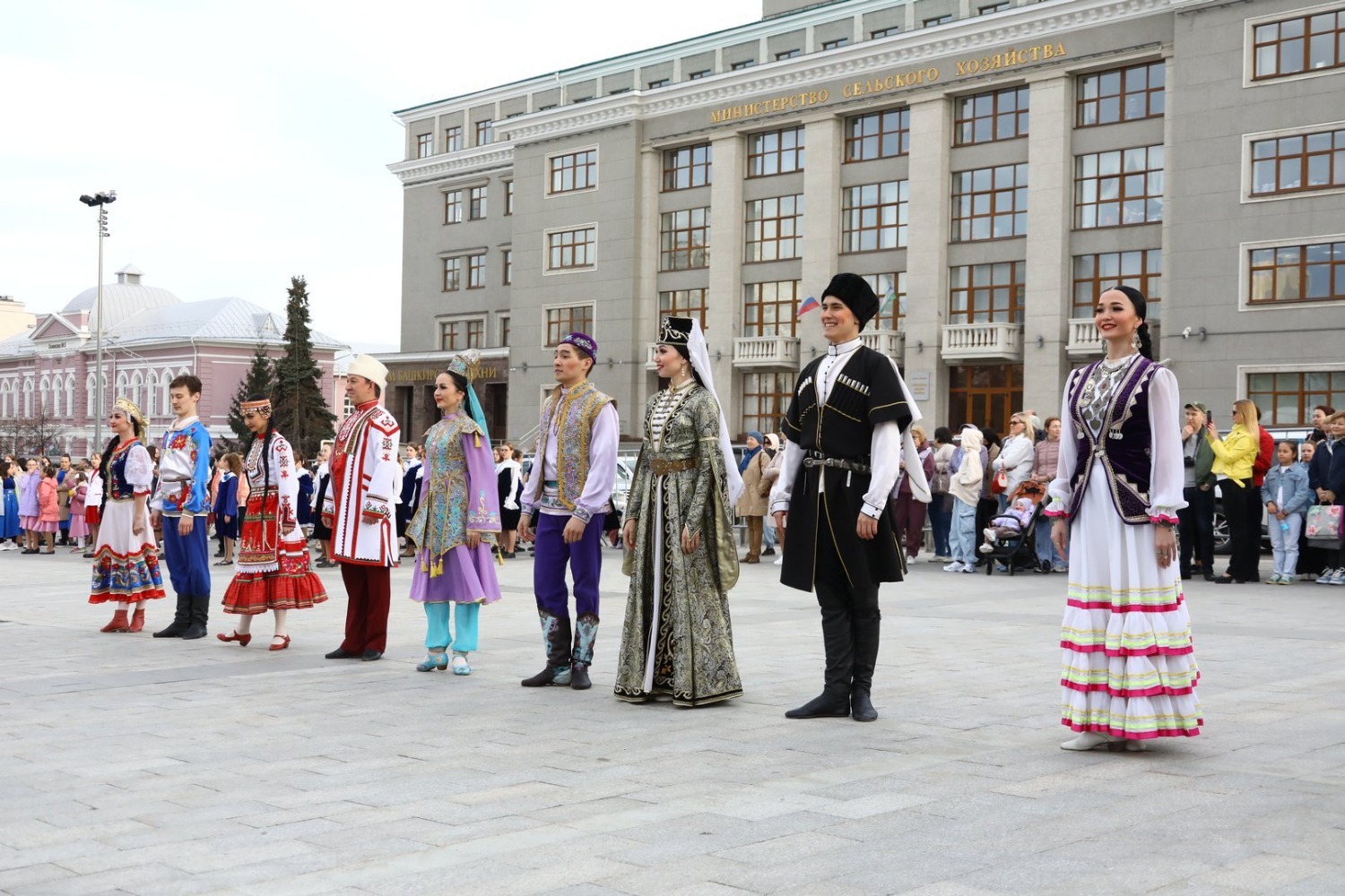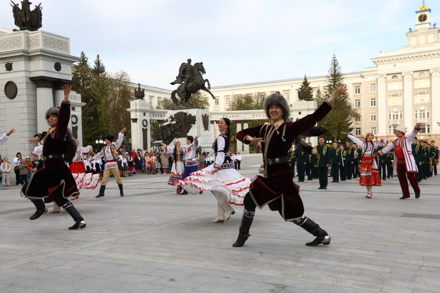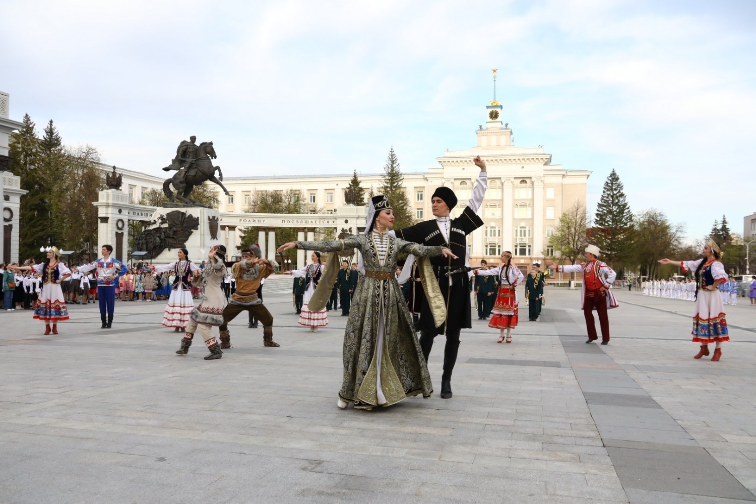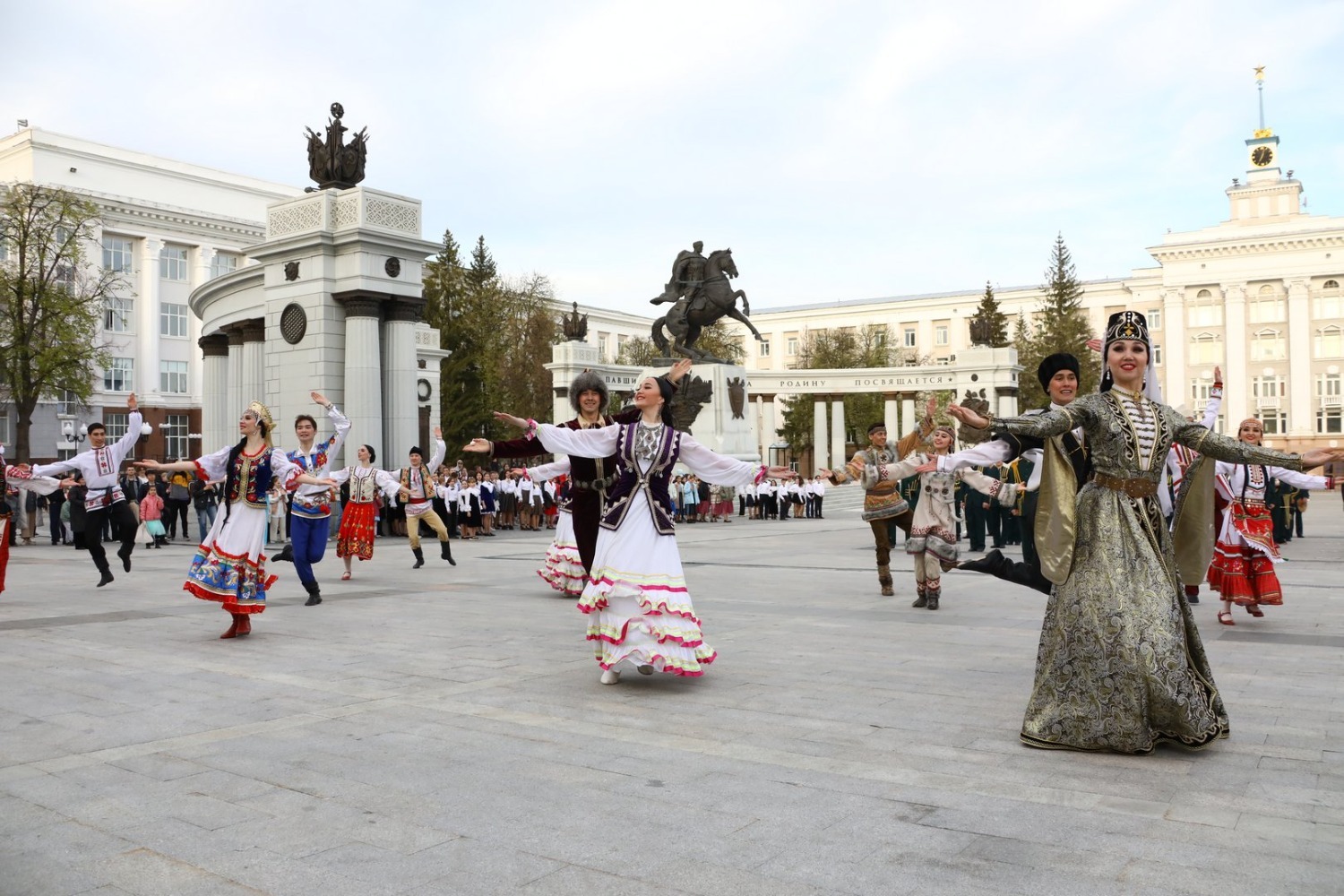 В Театральном сквере горожане с удовольствием наблюдали за ожившими персонажами фонтана. Легендарный танец «Семь девушек» представили артистки ансамбля народного танца «Талария» Торгово-экономического колледжа (руководитель Илюза Нугманова). Своими музыкальными номерами порадовали артисты оркестра народных инструментов ансамбля народного танца и песни «Мирас» Уфы.