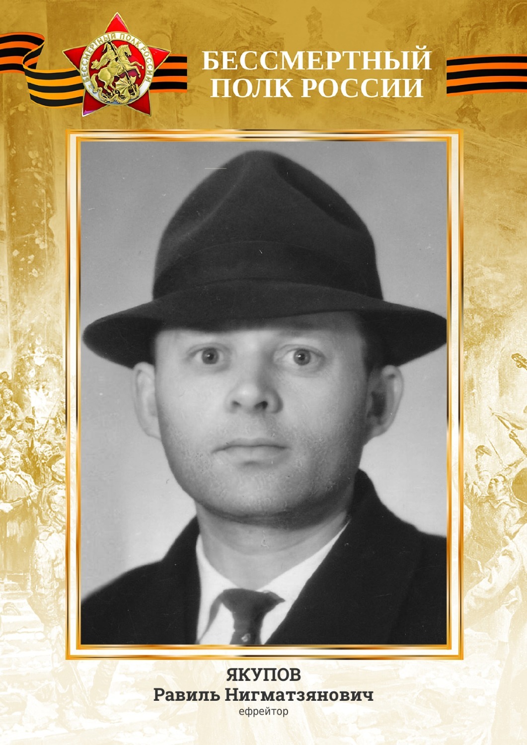 Дед по материнской линии Равиль Нигматзянович Якупов служил с 1944-го по 1946-й годы в 15-й артиллерийской дивизии. Дошел до Берлина, оставил свою подпись на стенах Рейхстага. Награжден двумя орденами Красной Звезды, медалями за отвагу, за взятие Кенигсберга, за взятие Берлина и многими другими. Получил контузию. Однажды спас своего генерала, вывезя того из окружения.