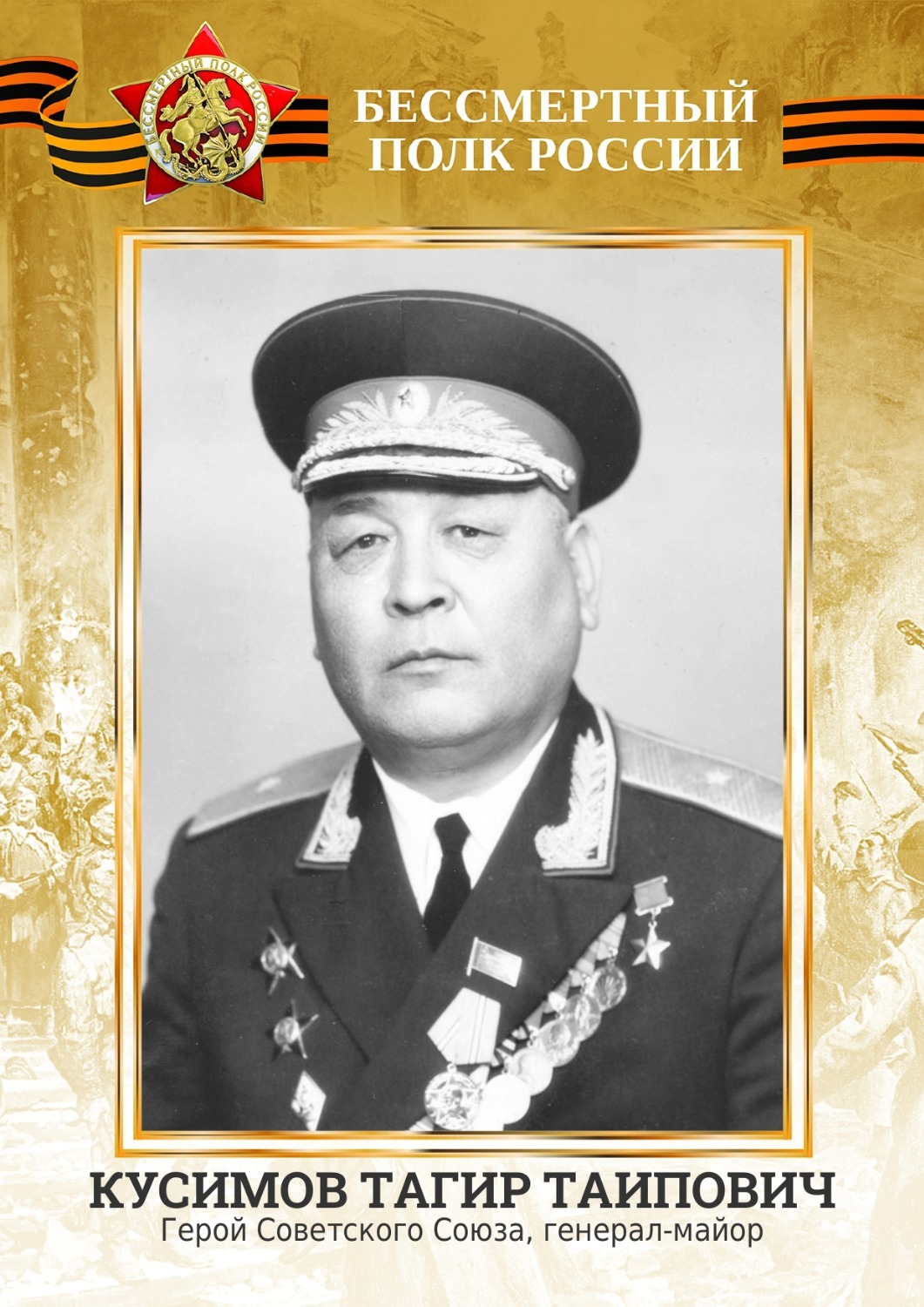 — Наше детство было озарено светом воинской доблести Героя Советского Союза, генерал-майора Тагира Кусимова (1909-1986). Это двоюродный брат моей бабушки со стороны мамы, Фатимы Муфаззаловой. Наш родной дедушка Гумер Гильманов больше чем кто-либо сделал для увековечения его памяти, создал Музей генерала Кусимова в его родной деревне Кусимово Абзелиловского района. Музей и сейчас развивается, является местной гордостью и достопримечательностью.