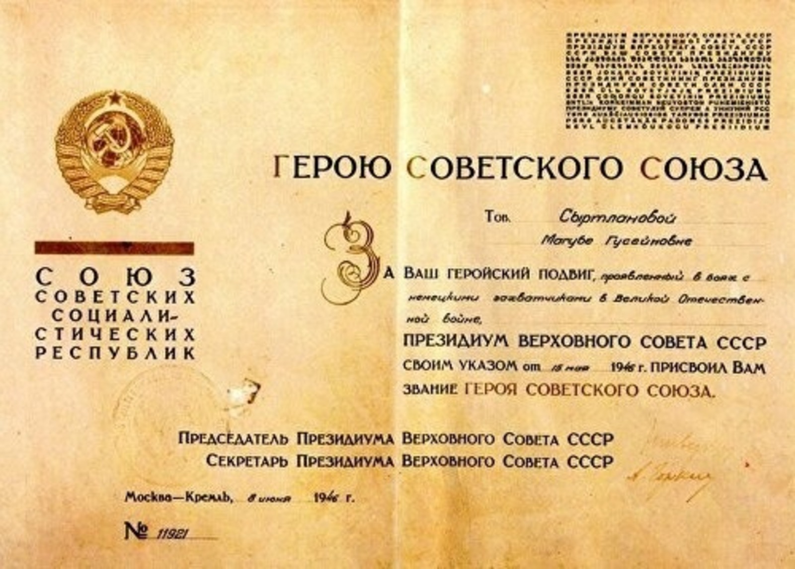 Сыртланова Магуба Гусейновна (по некоторым данным Хусаиновна) родилась 15 июля 1912 года в городе Белебее. Окончила аэроклуб и планерную школу в столице Грузии - городе Тбилиси. На войне Сыртланова оказалась в декабре 1942 года и попала в 46-й гвардейский таманский полк. Тот самый, летчиц которого немцы со страхом называли «ночными ведьмами».