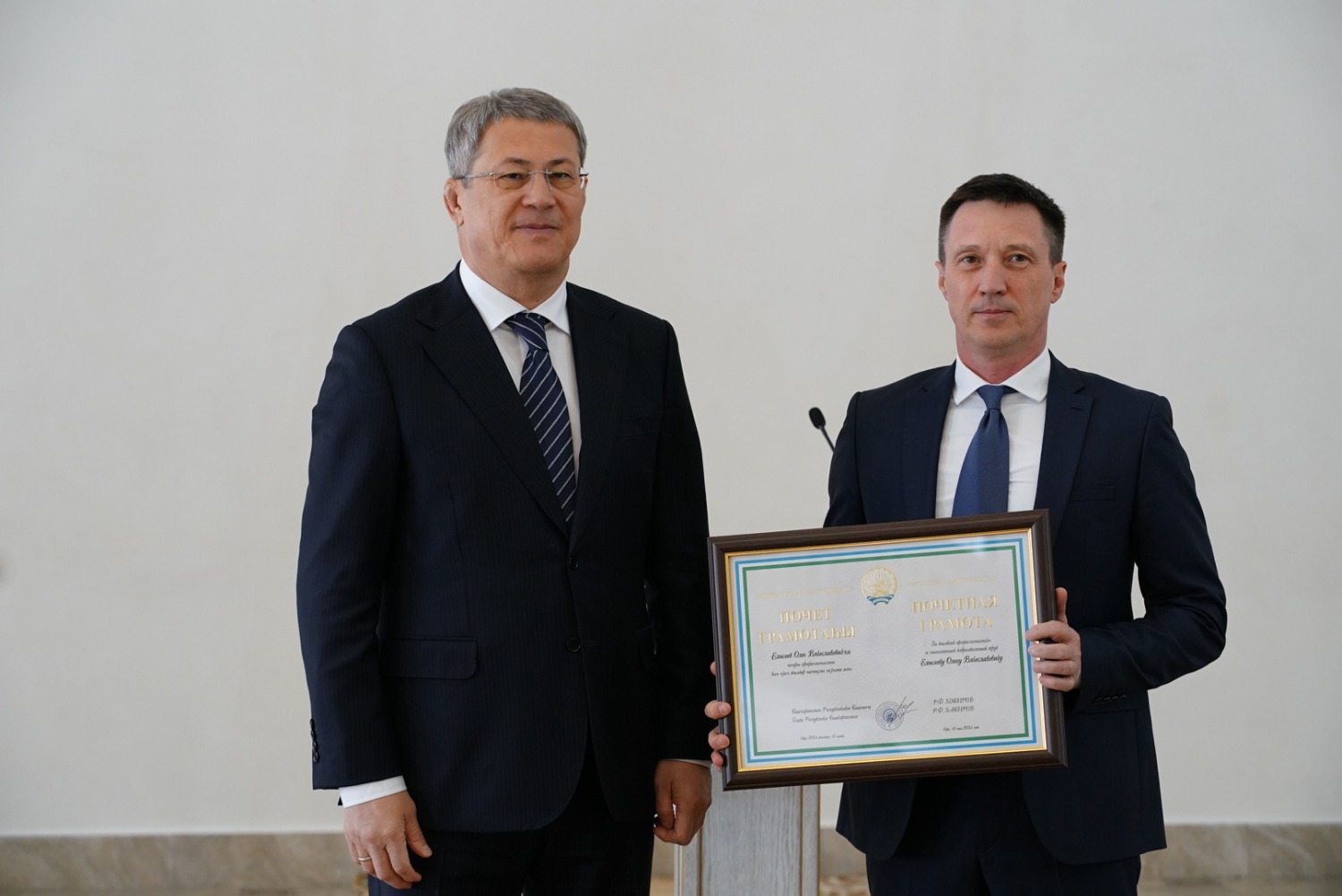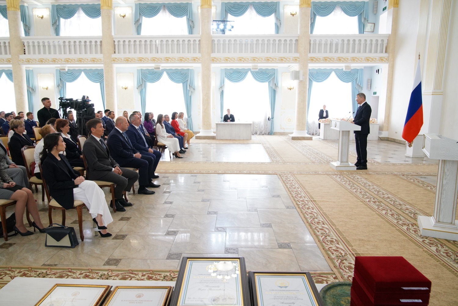 Сегодня, 14 мая, в Уфе Глава Башкирии Радий Хабиров вручил государственные награды республики представителям органов власти, правоохранительных органов и строителям, принявшим активное участие в восстановлении прав пострадавших граждан - участников долевого строительства на территории региона. Эта работа была успешно завершена в 2023 году.