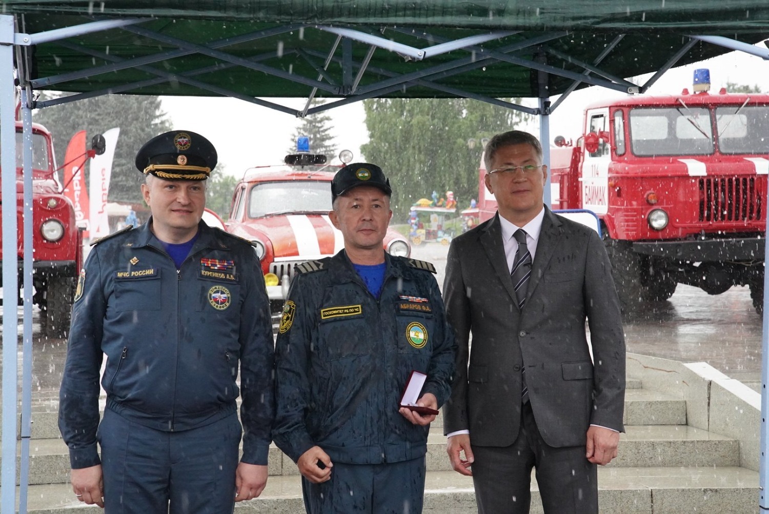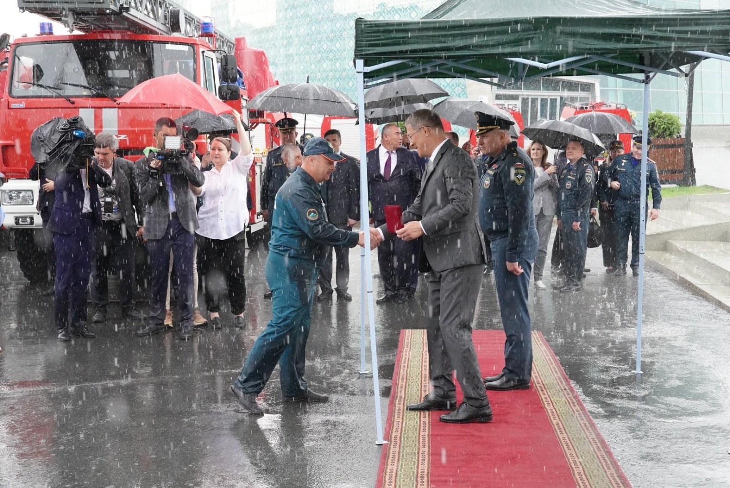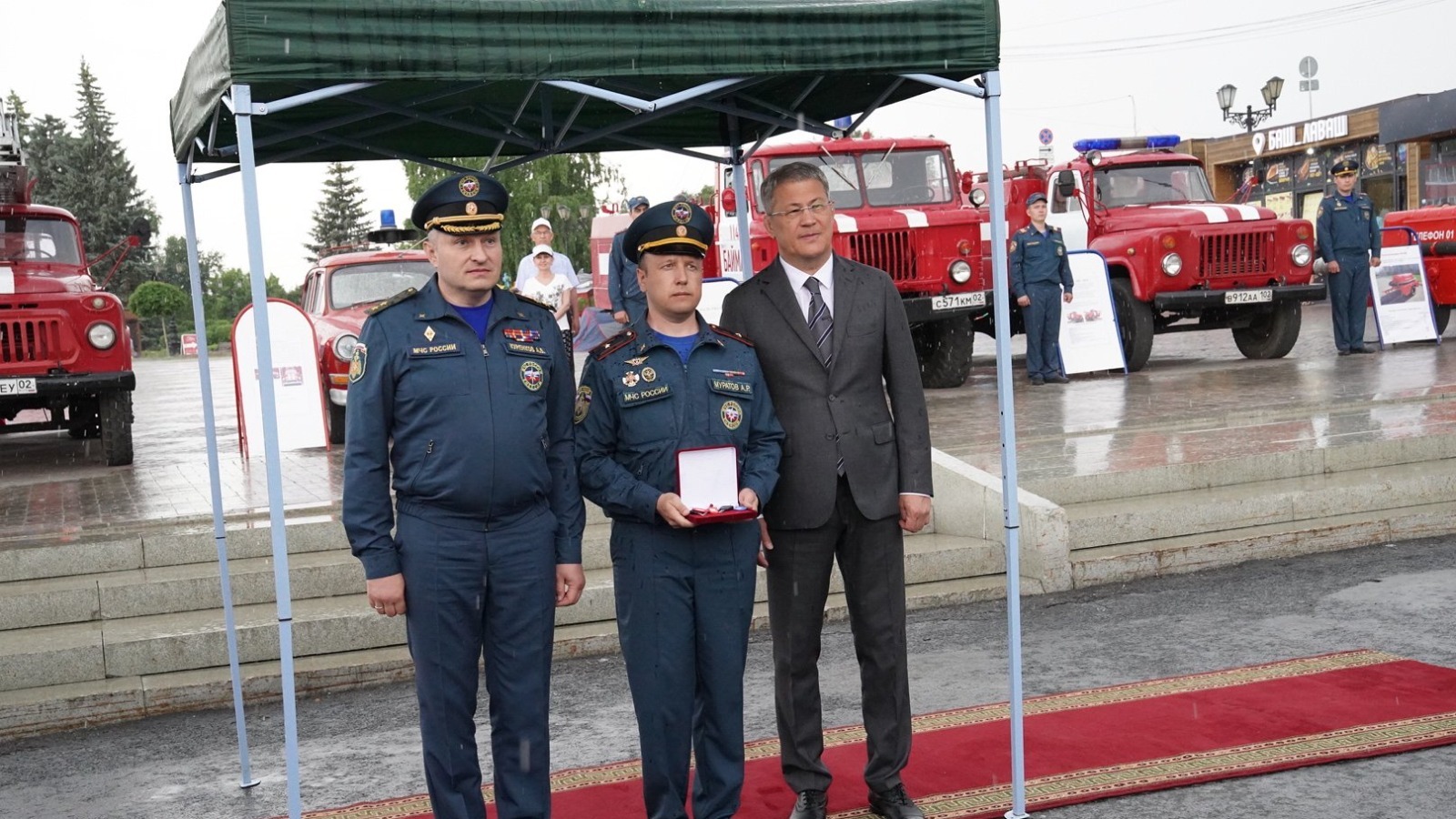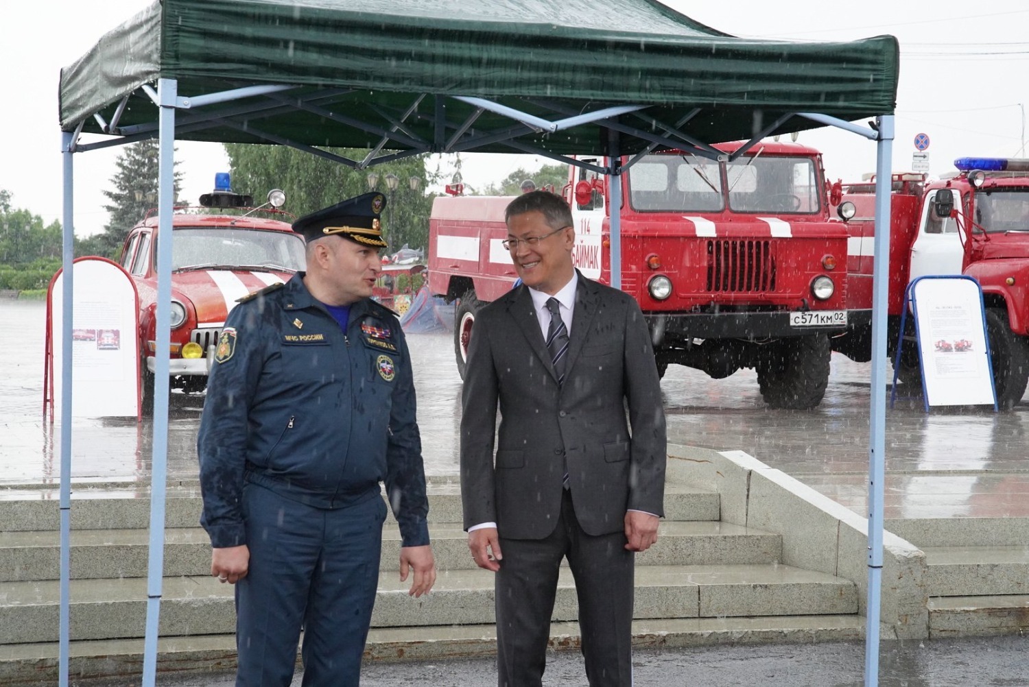 18 июня в Уфе министр Российской Федерации по делам гражданской обороны, чрезвычайным ситуациям и ликвидации последствий стихийных бедствий, генерал-лейтенант Александр Куренков и Глава Башкортостана Радий Хабиров вручили пожарным и спасателям ключи и сертификаты от новой спецтехники и оборудования.