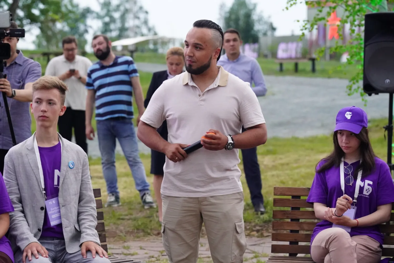 Во время общения волонтеры поблагодарили Радия Хабирова за возможность провести три дня в парке «Патриот», который поразил их с первых минут своей насыщенностью совершенно различными форматами площадок.