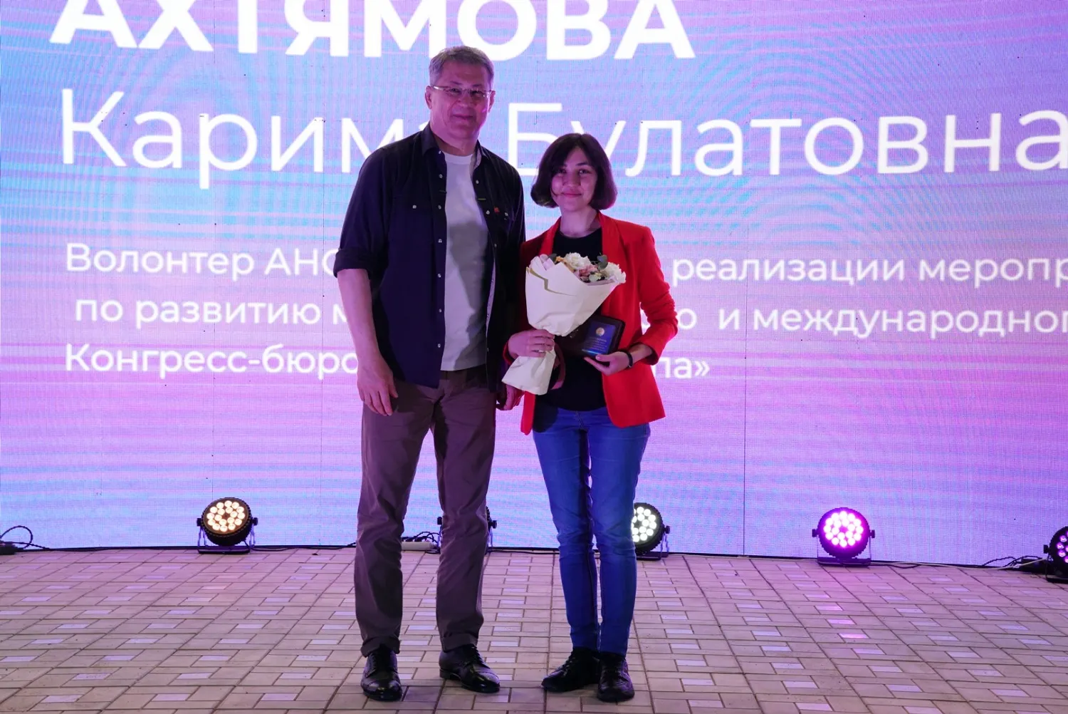 «Носите их с гордостью, чтобы все видели, что вы волонтеры. Это дань уважения вашей деятельности, вашим позывам души и сердца», - сказал Радий Хабиров.