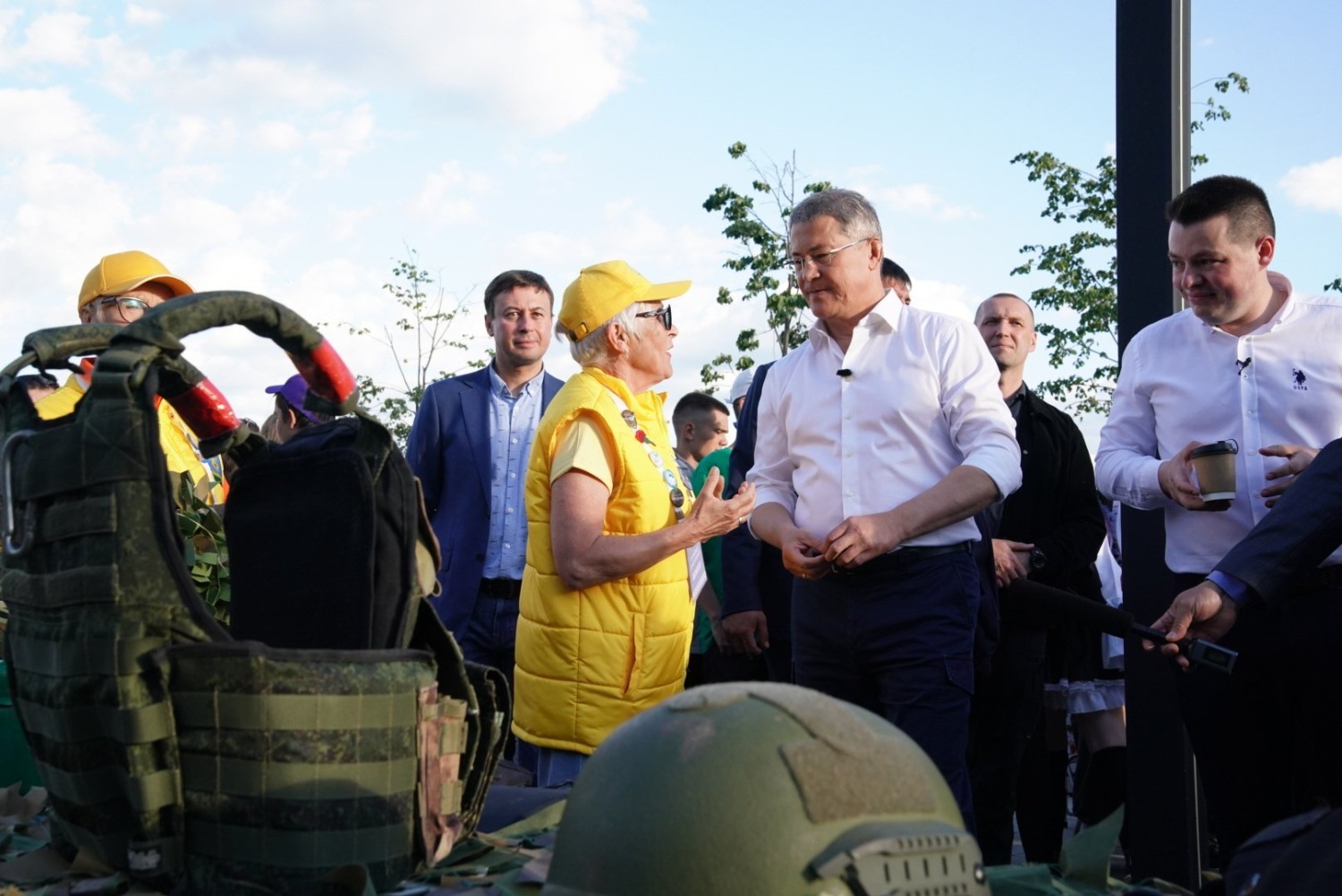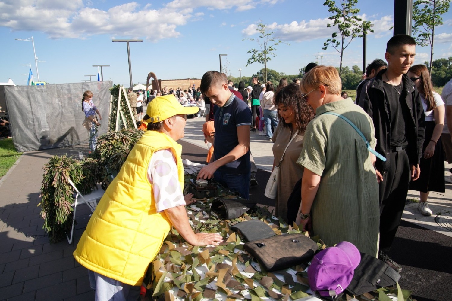 Радий Хабиров в зоне поддержки СВО осмотрел выставку оружия и поисковых отрядов, а также пообщался с волонтерами, которые плетут маскировочные сети для наших бойцов. На празднике они проводили мастер-классы для молодежи и выразили надежду, что молодежь на каникулах присоединится к плетению масксетей.