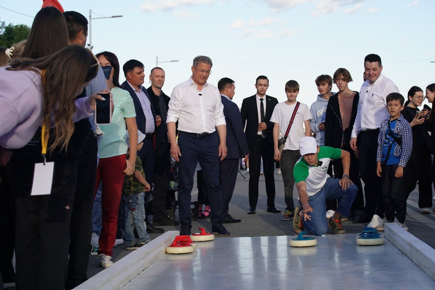 Глава региона осмотрел спортивные зоны молодежного праздника и попробовал свои силы в кёрлинге.