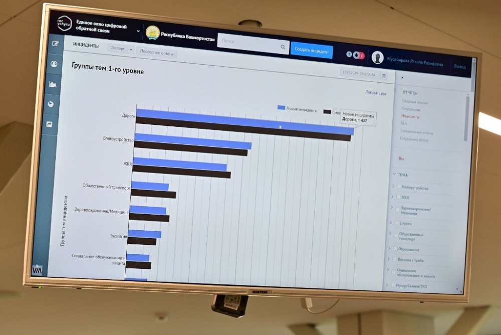 Марату Хуснуллину показали работу информационных систем «Инцидент менеджмент» и «Платформа обратной связи», которые позволяют оперативно реагировать на обращения и своевременно решать острые вопросы — в неделю здесь обрабатывают до пяти тысяч обращений.