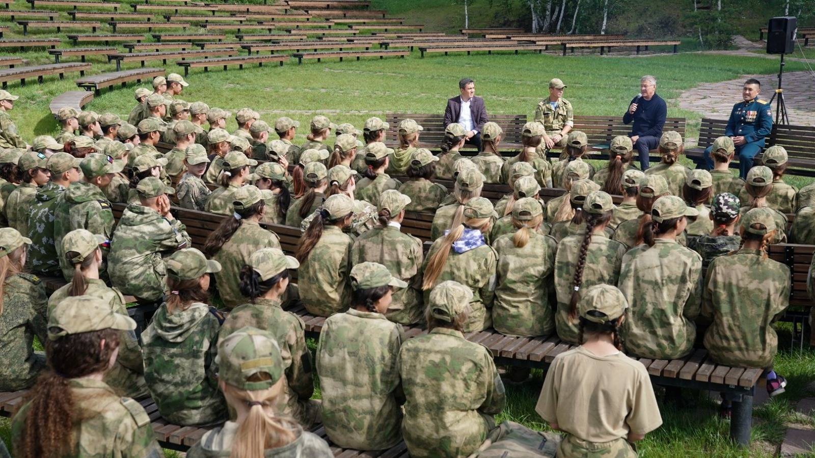 «Парк «Патриот» мы создали на месте дислокации бывшей инженерно-ракетной бригады, чтобы молодому поколению рассказывать здесь про нашу Родину, показывать её военную историю, которую обязательно нужно знать. Самое главное, что есть у человека в жизни – это Родина и его семья. Очень здорово, что вы являетесь членами военно-патриотических клубов. Это значит, вы хотите сделать в жизни что-то большее, чем просто хорошо учиться, – подчеркнул Радий Хабиров. – Вашему поколению впервые приходится сталкиваться с реальной угрозой нашей стране. В специальной военной операции принимают участие много ребят из нашей республики. И мы всегда поддерживаем с ними тесную связь, помогаем. У нас нет задачи, чтобы все вы стали военными. Но получить начальную подготовку по военному делу, тактической медицине очень важно для хорошего и уважаемого человека. Надеюсь, вам здесь нравится, впереди у вас ещё неделя занятий. А 2 августа, в День воздушно-десантных войск, проведём в «Патриоте» большой праздник, пригласим ваших братьев, отцов, дедушек, которые служили в армии. И я уверен, что вы продемонстрируете лучшие свои результаты».