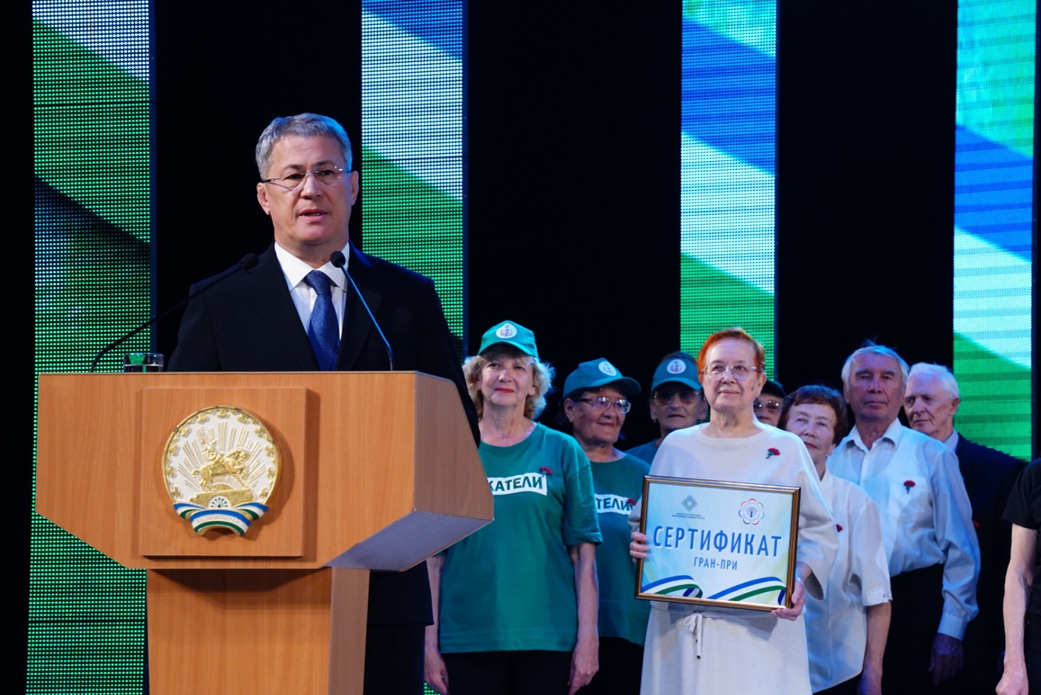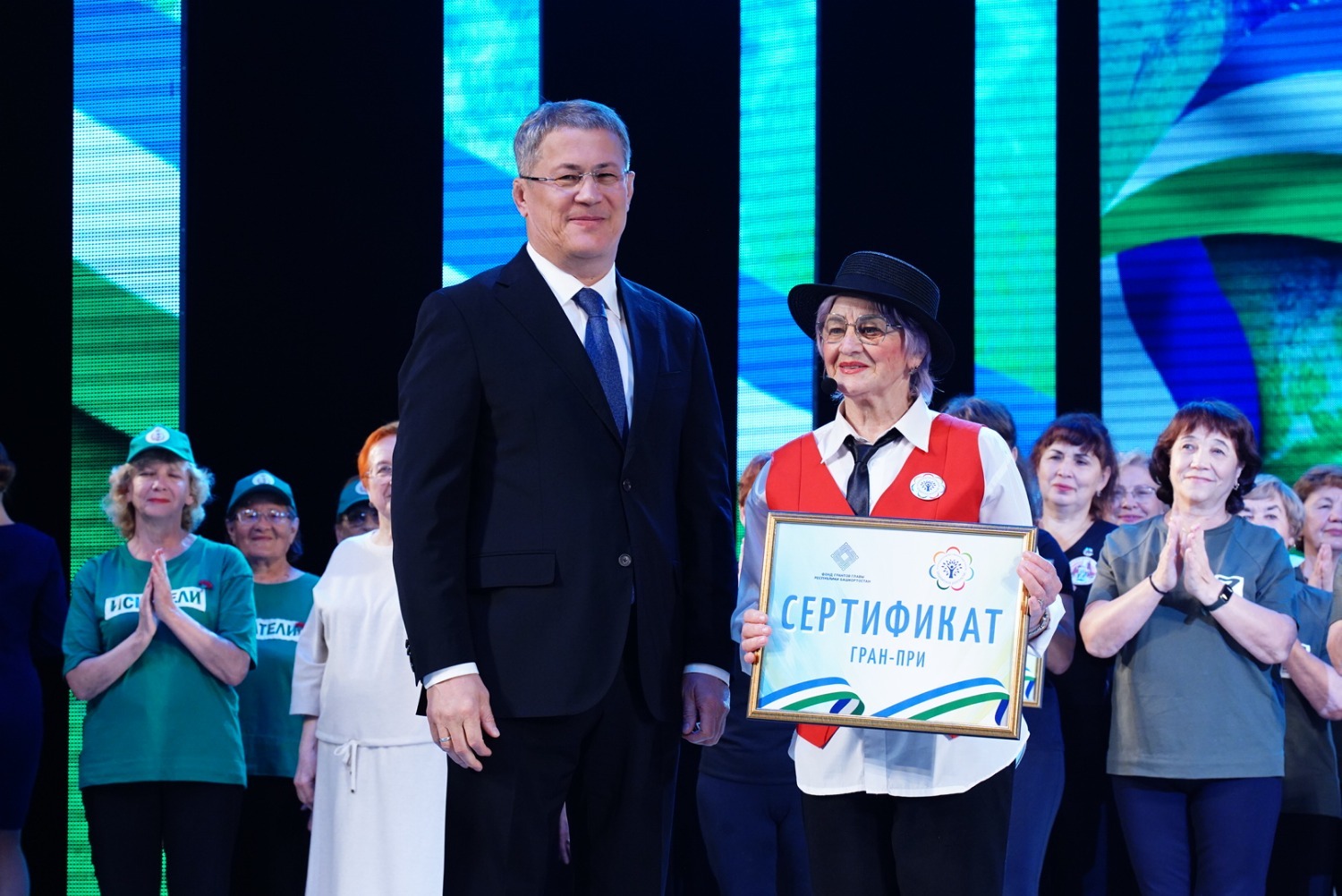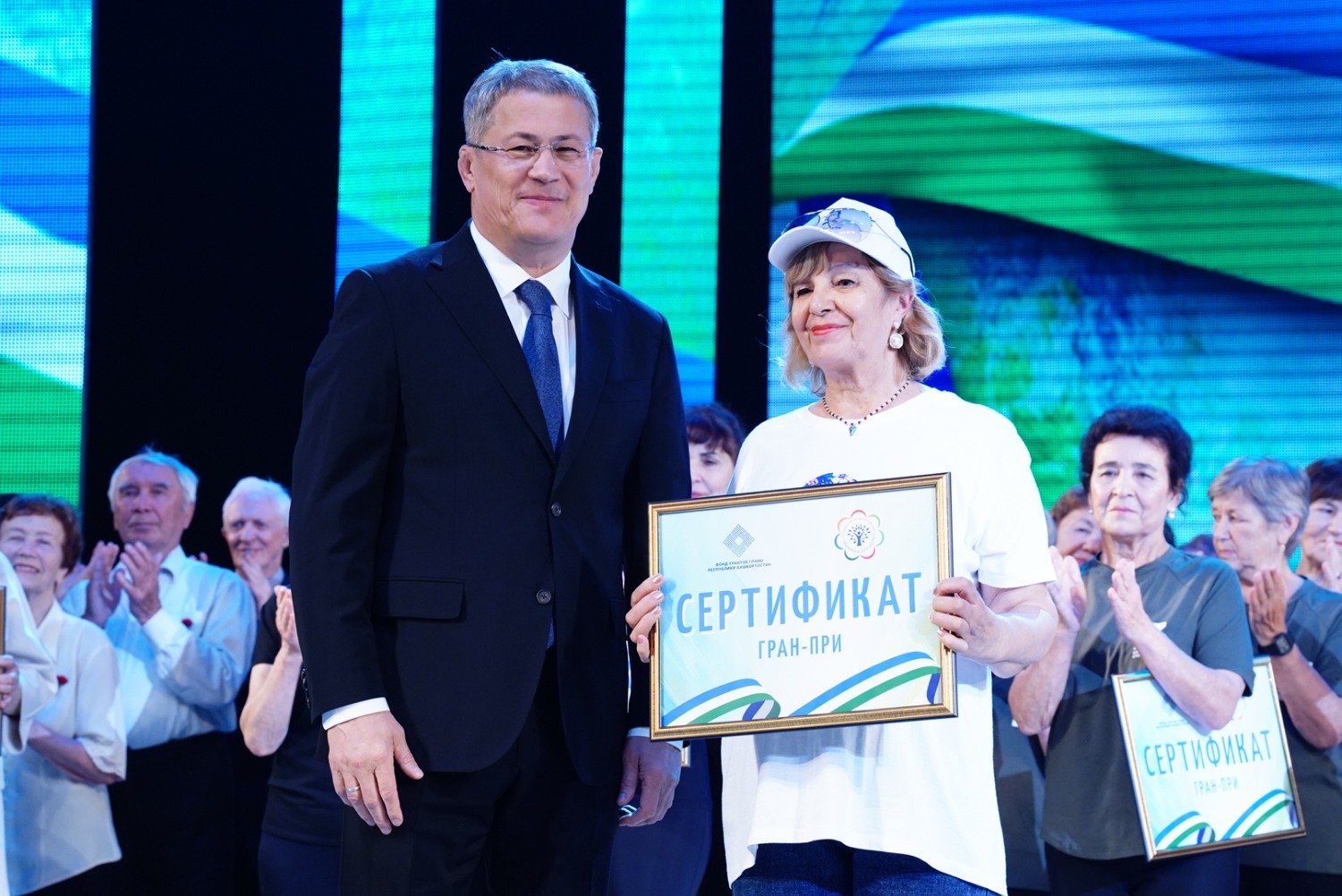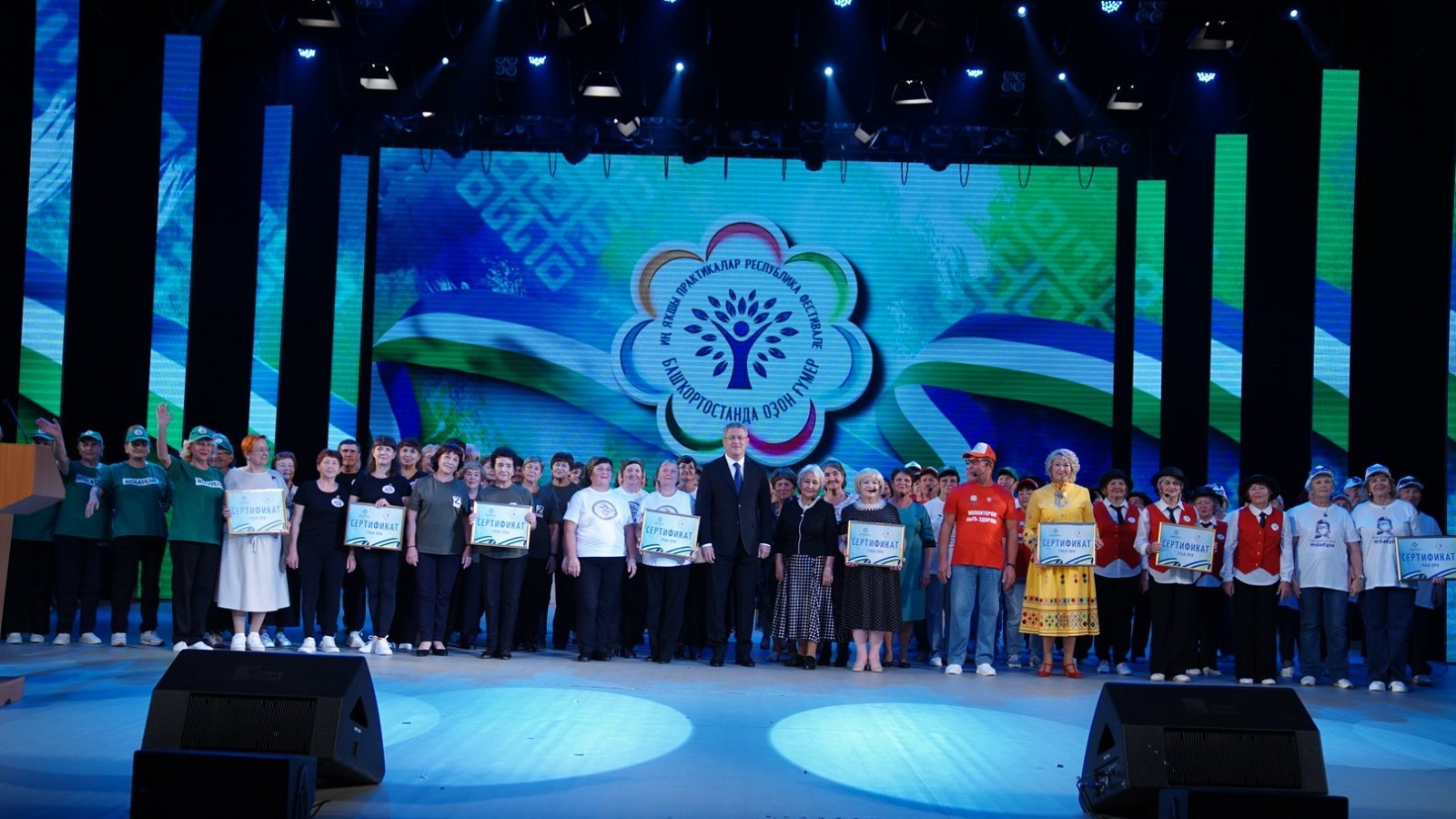 27 августа в Государственном концертном зале «Башкортостан» Глава республики Радий Хабиров наградил победителей республиканского фестиваля лучших практик проекта «Башкирское долголетие». В зональных турах приняли участие 56 районов и городов РБ, в том числе 7 районов Уфы. По итогам проведенных туров Гран-при получили 8 команд, лауреатами 1-й степени стали 8 команд.