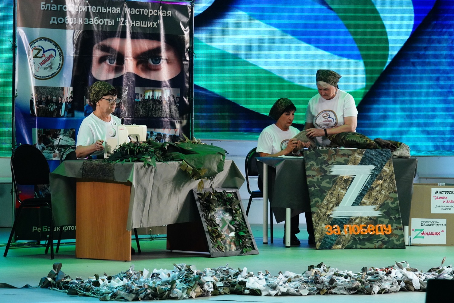 — команда «Мастерская добра и заботы «Zа наших» (Давлекановский район). «Серебряные» волонтёры этой мастерской изготавливают предметы маскировки для наших земляков.