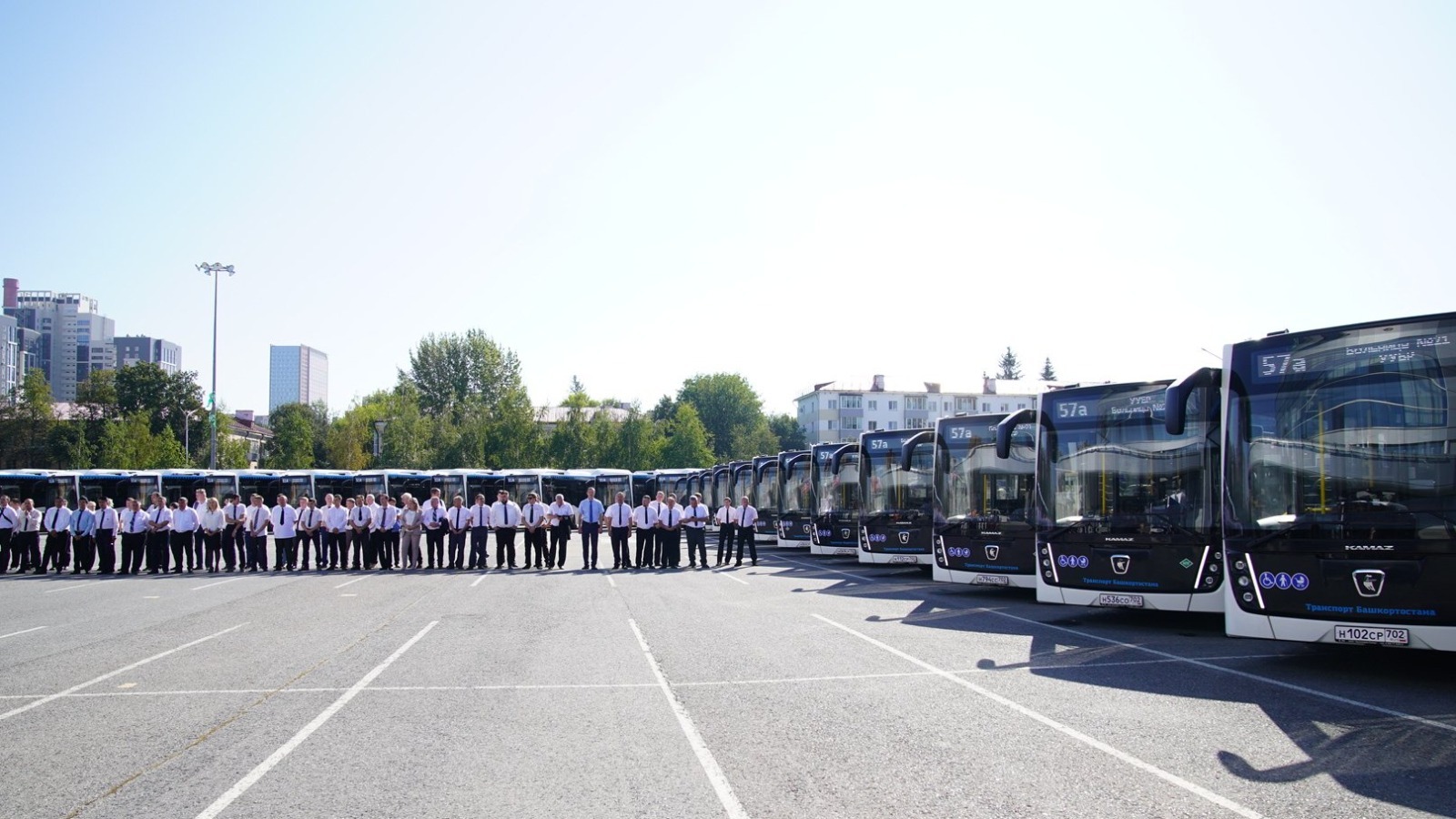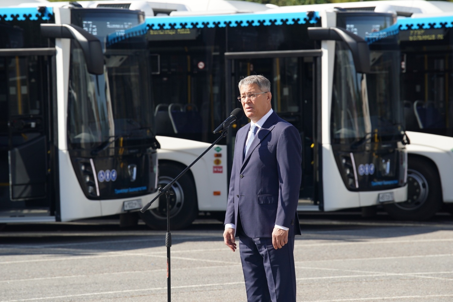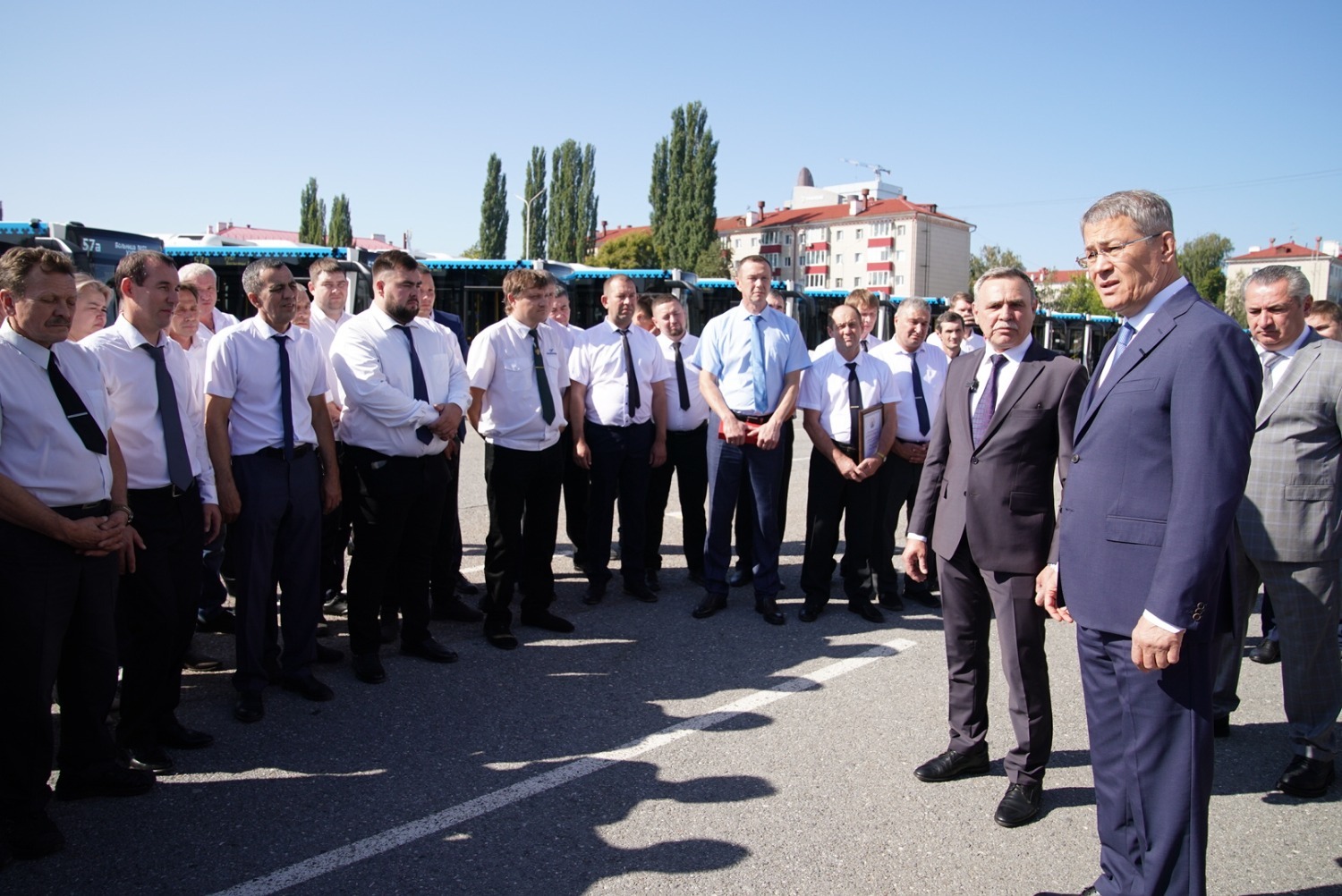 «Мы 31 августа отметим торжественно юбилей Уфы, делаем для столицы такой большой, на мой взгляд, очень важный и долгожданный подарок. Мы передаём нашему „Башавтотрансу“ — главному башкирскому перевозчику — 88 новых больших автобусов, они изготовлены у нас. Мы продолжаем работу по улучшению транспортной инфраструктуры нашей республики, нашей Уфы. И, конечно, в этот день я хочу поблагодарить наш коллектив „Башавтотранса“, вас, уважаемые водители, за ваш труд, он очень серьёзный, очень важный. Мы недавно с генеральным директором „Башавтотранса“ обсуждали перспективы развития предприятия. Я поставил задачу директору: самое главное – забота о людях, потому что несколько тысяч человек работает в „Башавтотрансе“, и вы, собственно, главное наше богатство. Хочу пожелать вам безаварийной работы, добрых и отзывчивых пассажиров, поэтому поздравляю вас ещё раз с этим радостным событием», — сказал Радий Хабиров.