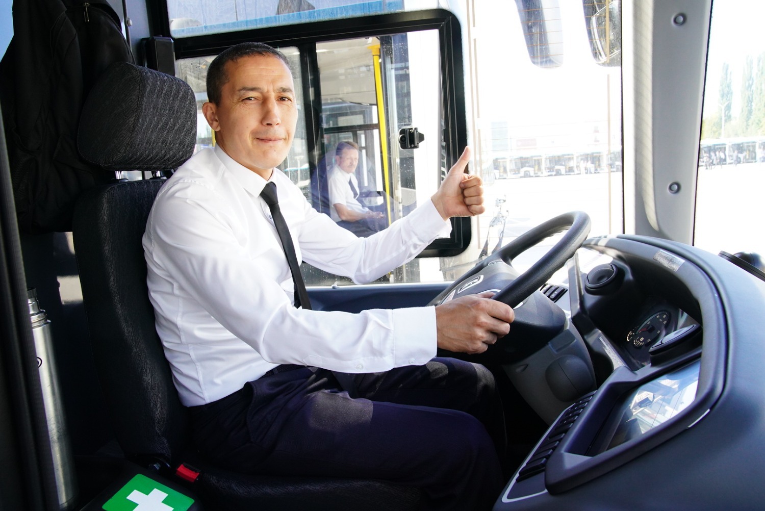 Водитель одного из новых «НЕФАЗов» Алия Гадельшина во время общения с Главой региона рассказала, что она 7 лет работает в «Башавтотрансе» после того, как переехала в Уфу с семьей из Салаватского района. Алия – мама 4 сыновей и, по ее словам, ей нравится ее работа.