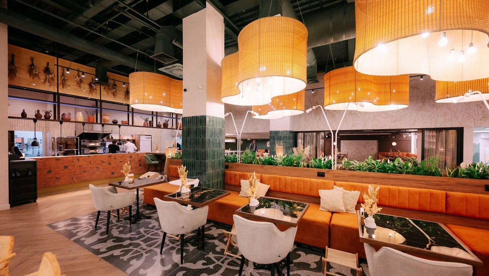 Гастрономическая часть, в свою очередь, совершенно не похожа на привычные для таких мест кафе а-ля детский парк или пиццерию. Это полноценный ресторан с авторской кухней, широкой барной картой и актуальным дизайном. Здесь разные виды посадок от уютных столиков до больших барных столов для компаний. Здесь здорово провести семейный обед или встретиться с друзьями за ужином.