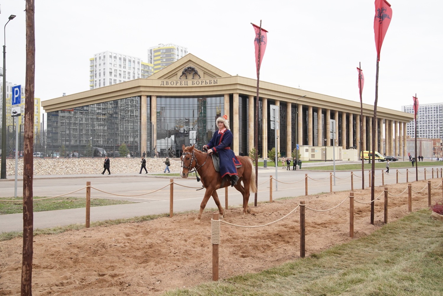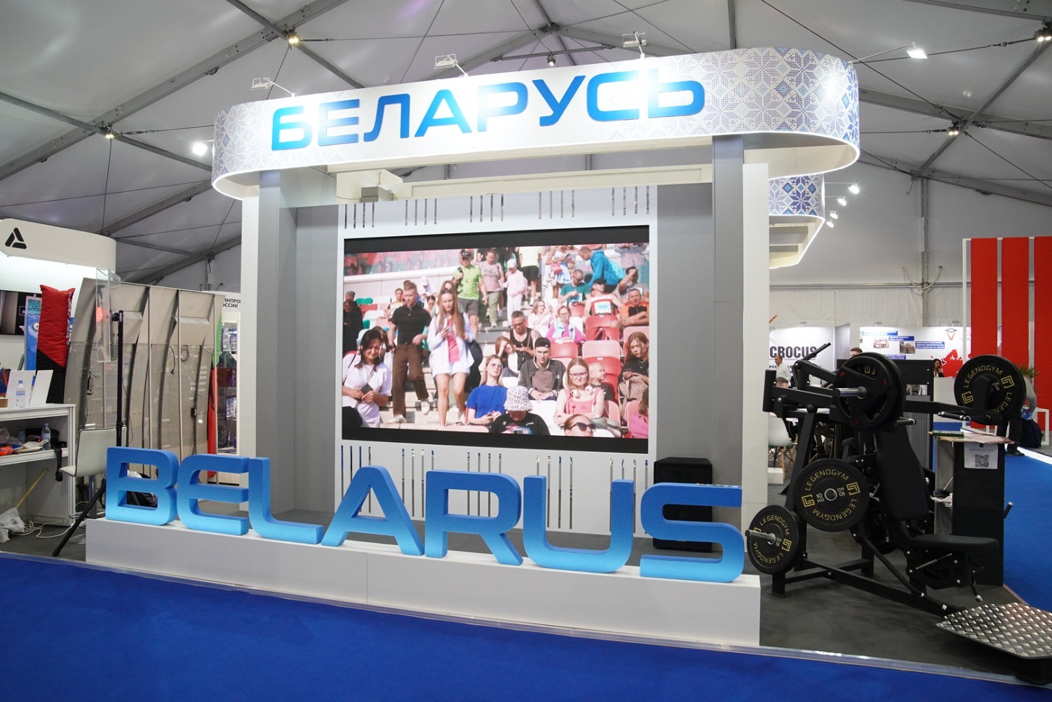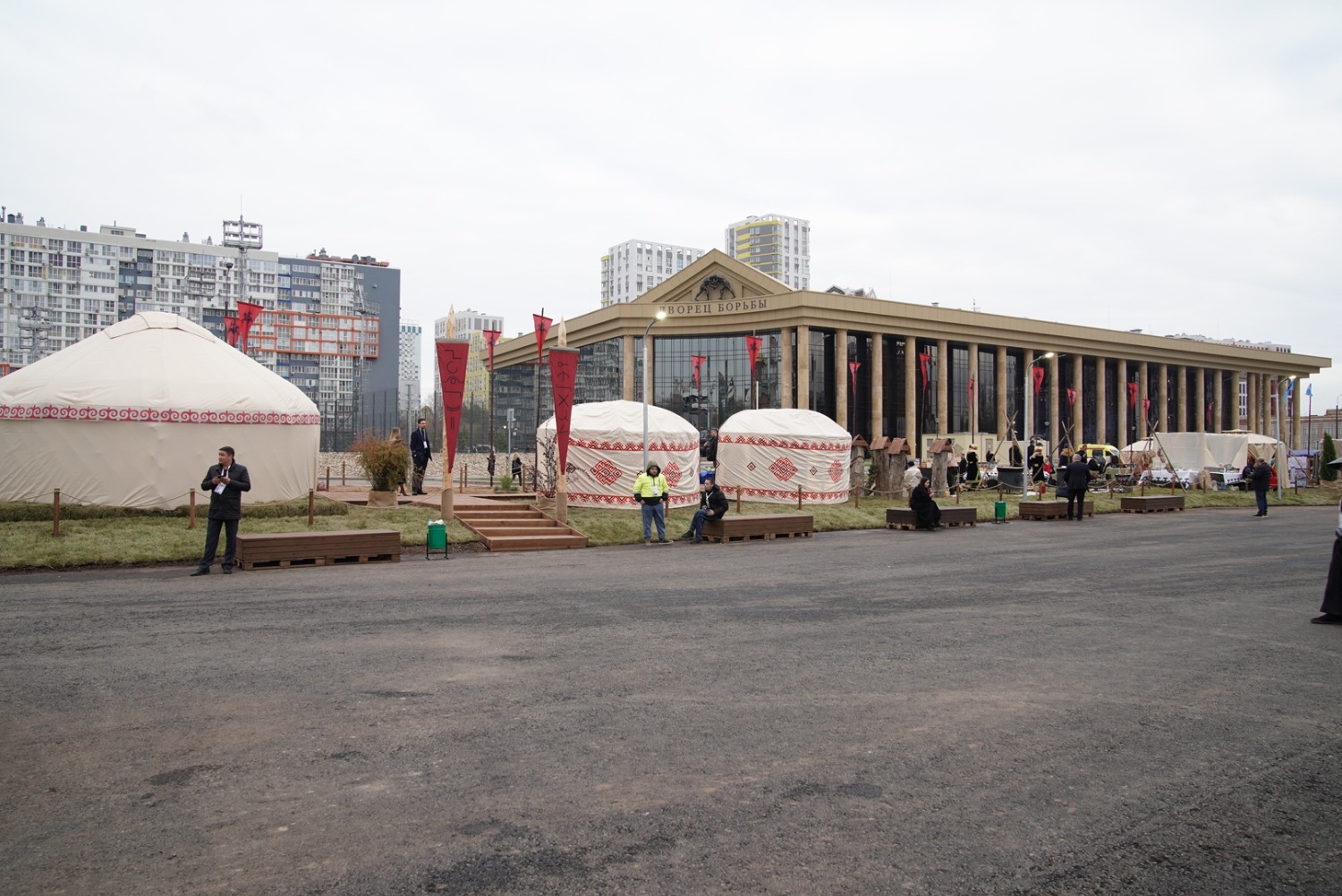 У Дворца борьбы весь день будет работать большая выставочная композиция.