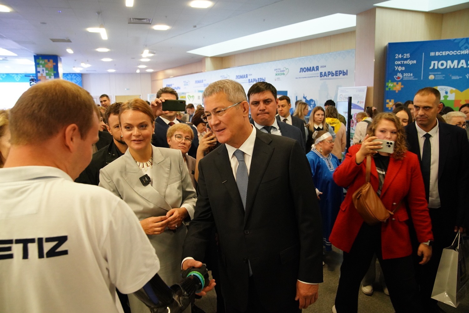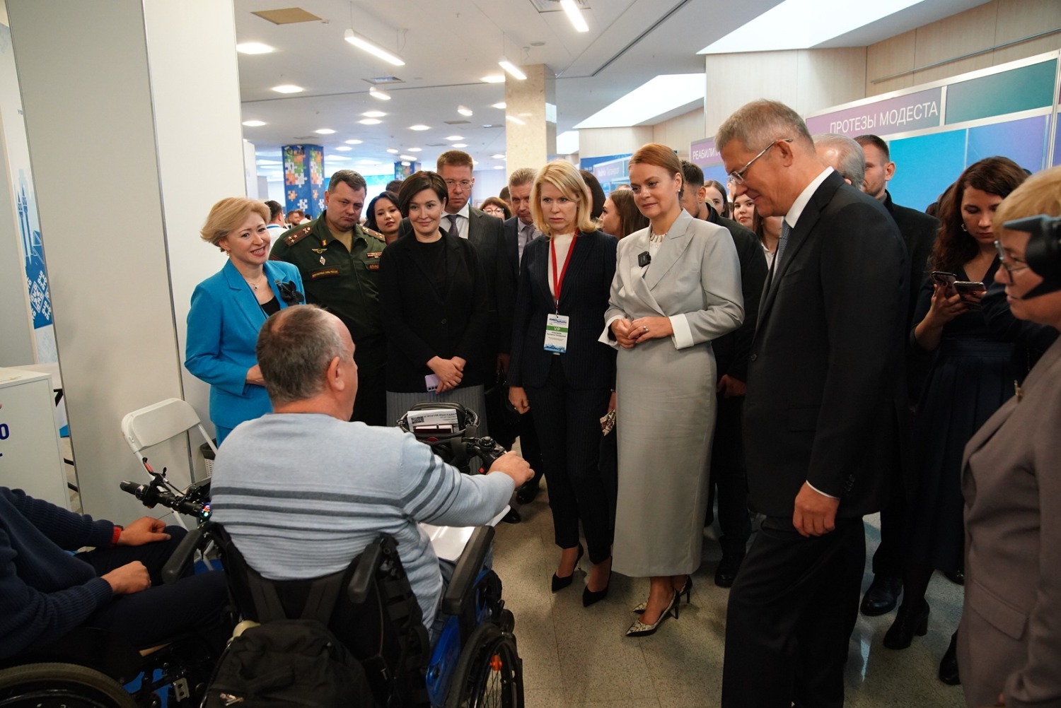 Радий Хабиров, Анна Цивилева и Светлана Чупшева также ознакомились с экспозициями предприятий, которые производят технические средства реабилитации для людей с ограниченными возможностями здоровья. Свою продукцию представили более 50 предприятий и компаний.