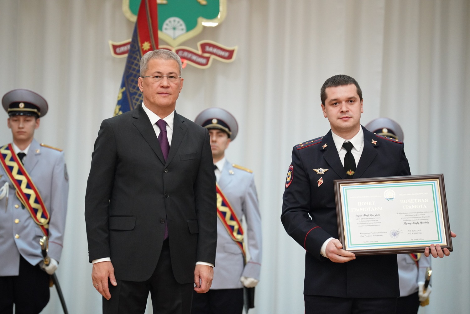 Радий Хабиров также вручил государственные награды Башкортостана лучшим сотрудникам полиции.
