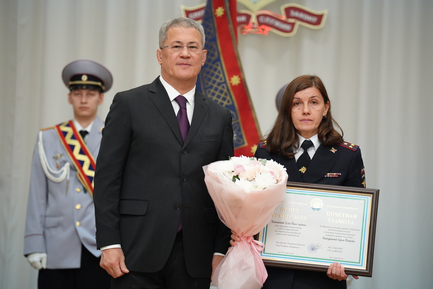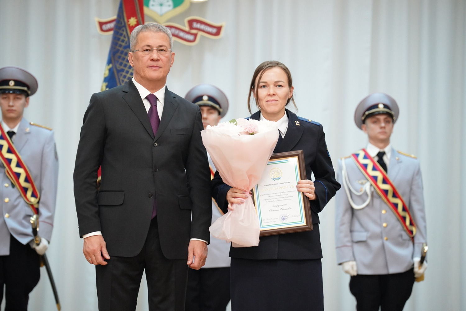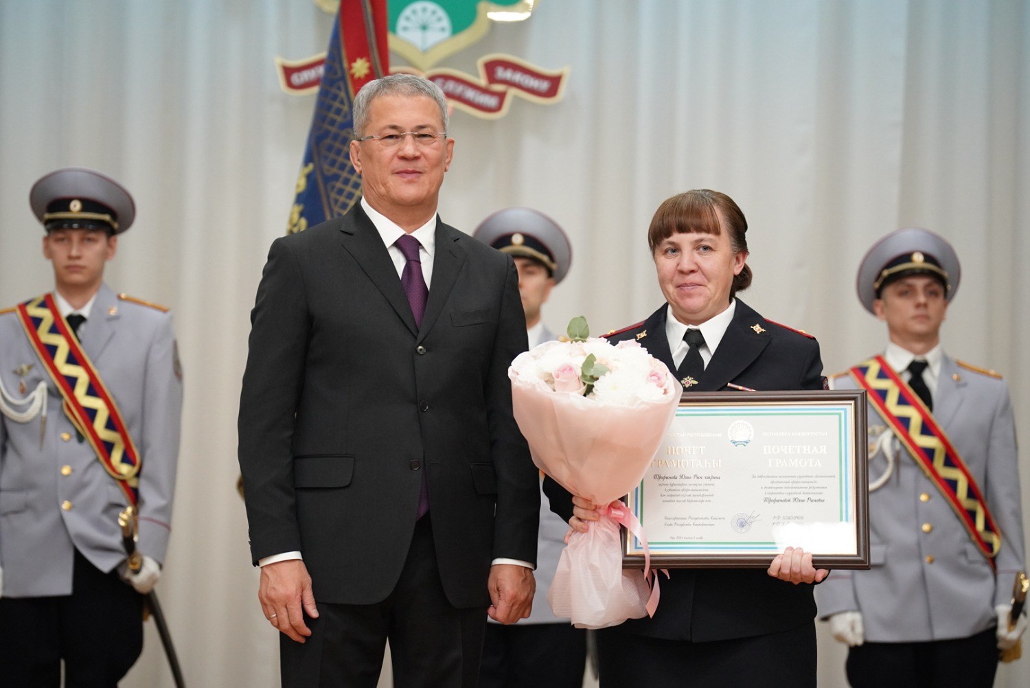 Ещё раз сердечно поздравляю вас с профессиональным праздником. И, конечно, поздравляю уважаемого Александра Александровича Прядко с присвоением специального звания генерал-лейтенанта полиции. Уверен, что и в дальнейшем мы в тесном взаимодействии с Министерством внутренних дел по Республике Башкортостан будем достойно решать задачи по укреплению законности и правопорядка. Желаю всем сотрудникам органов внутренних дел мира и благополучия, крепкого здоровья, успехов в нелегкой и ответственной службе», – сказал Глава республики.