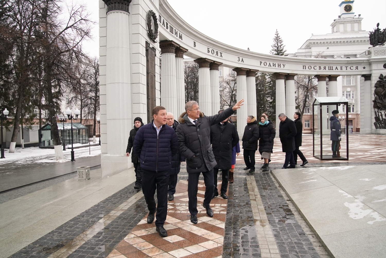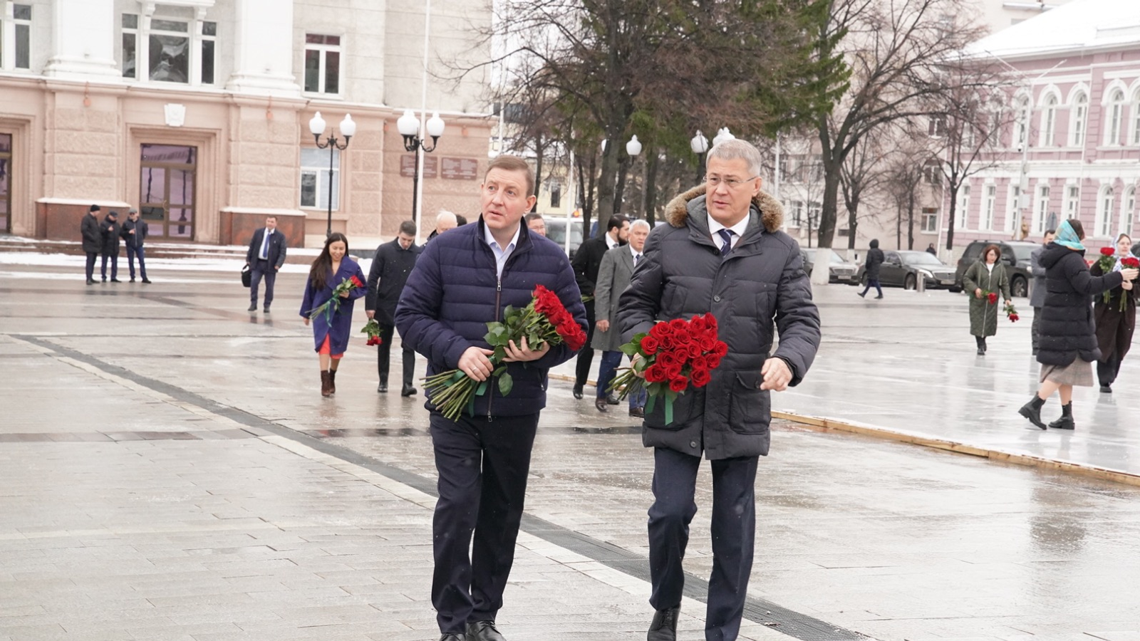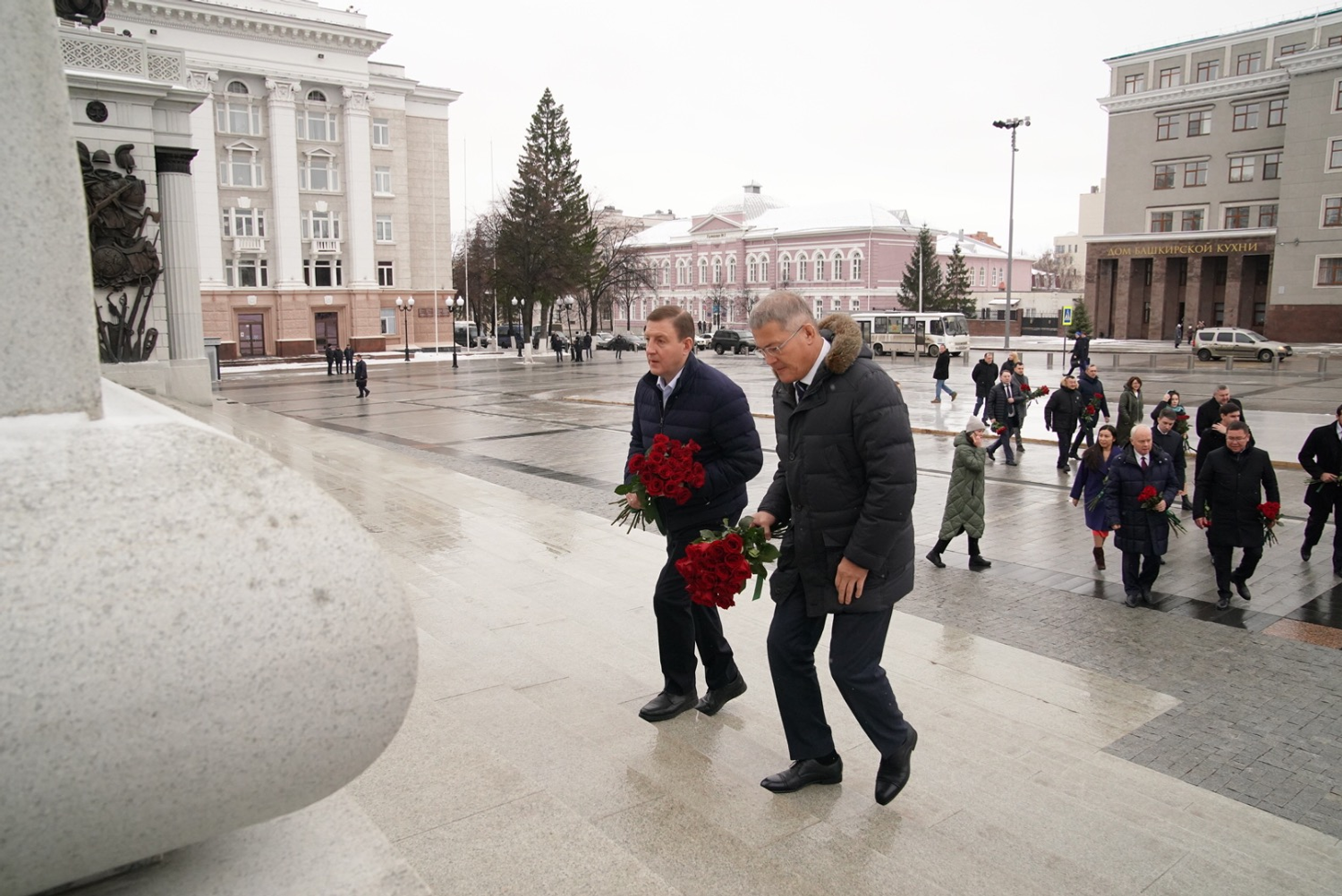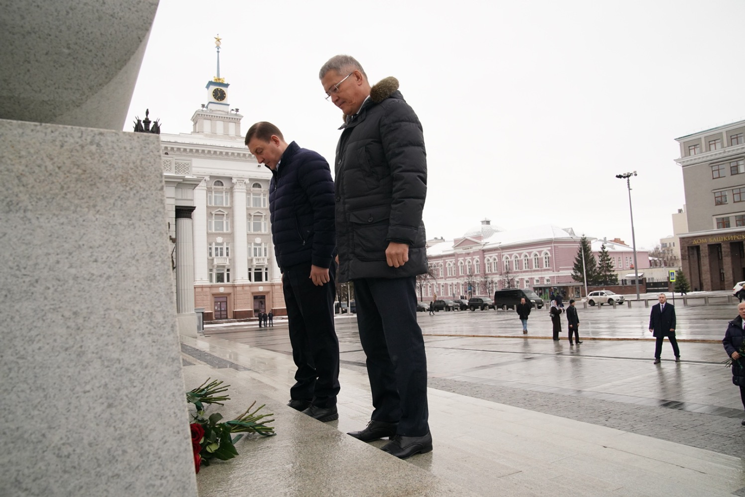 Глава Башкортостана Радий Хабиров и Глава Республик Алтай Андрей Турчак возложили цветы к памятнику Герою России, генерал-майору Минигали Шаймуратову.