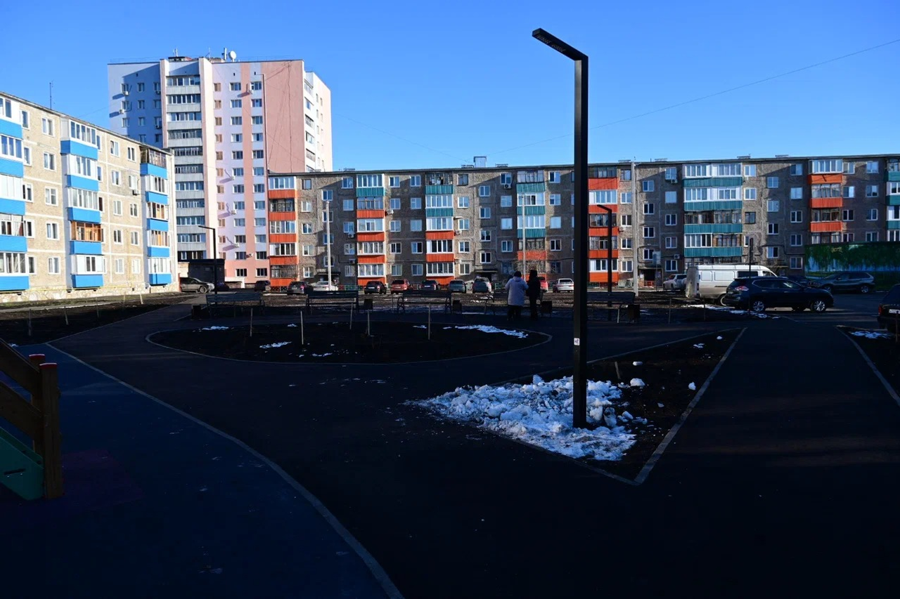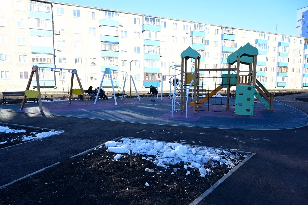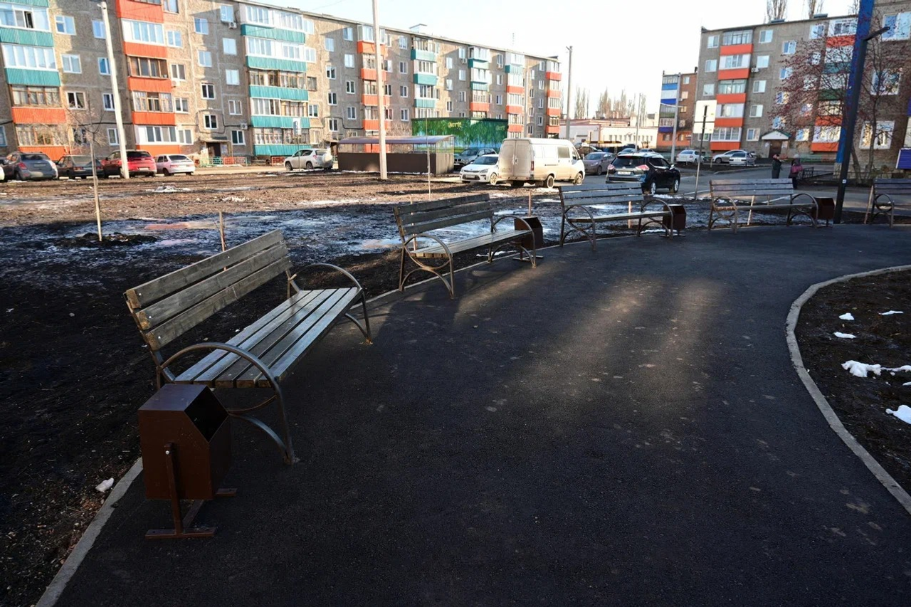 Здесь в план вошел большой участок, где находятся жилые дома на улицах Калинина, 18, 20, 22, 24, 26 и Ленина, 64 с охватом более 1,1 тысячи человек. По 45,8 миллионному проекту выполнили демонтаж, отремонтировали тротуар, заасфальтировали внутреннюю дорогу, смонтировали детскую площадку, установили новые заборы, мусорные контейнеры и т. д., однако качество работ руководитель Башкирии раскритиковал.