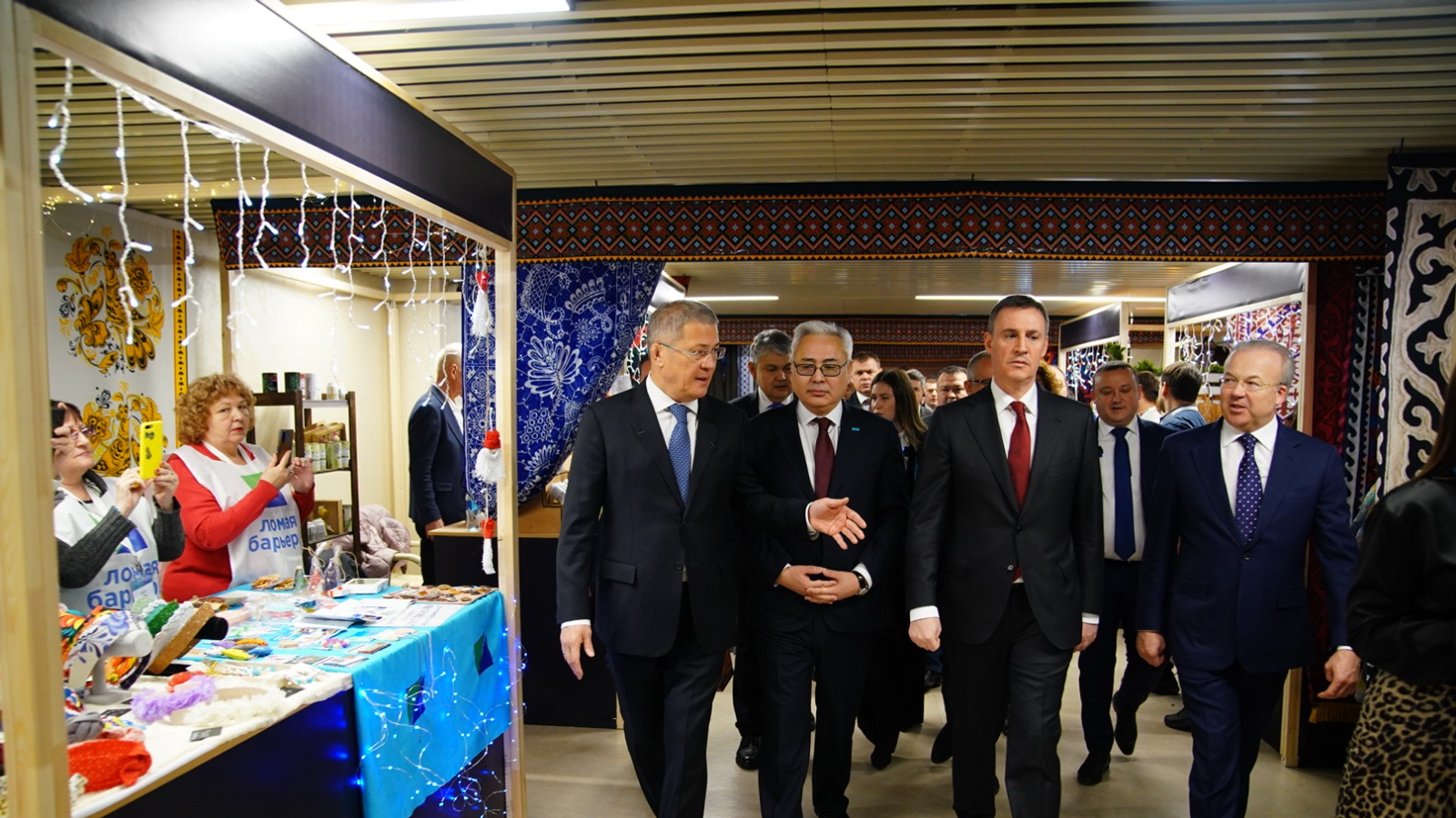 Сегодня на XX Форуме межрегионального сотрудничества России и Казахстана выставку достижений народного хозяйства двух государств посетили заместитель председателя правительства России Дмитрий Патрушев, заместитель премьер-министра — руководитель аппарата правительства Казахстана Галымжан Койшыбаев и Глава Башкортостана Радий Хабиров.