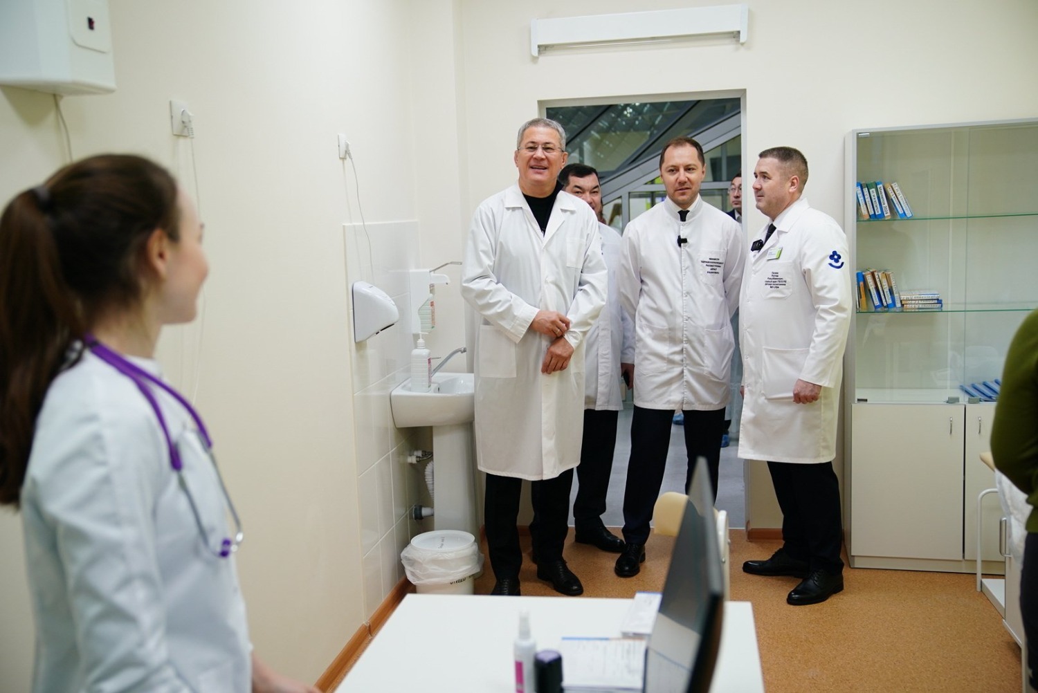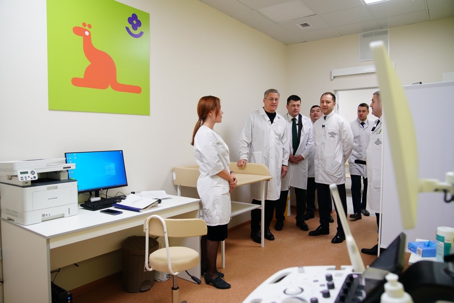 Руководитель республики осмотрел кабинеты врача педиатра, вакцинации, офтальмолога, для проведения фиброгастродуоденоскопий, ультразвуковых исследований, рентген кабинет, пообщался с врачами и пациентами.