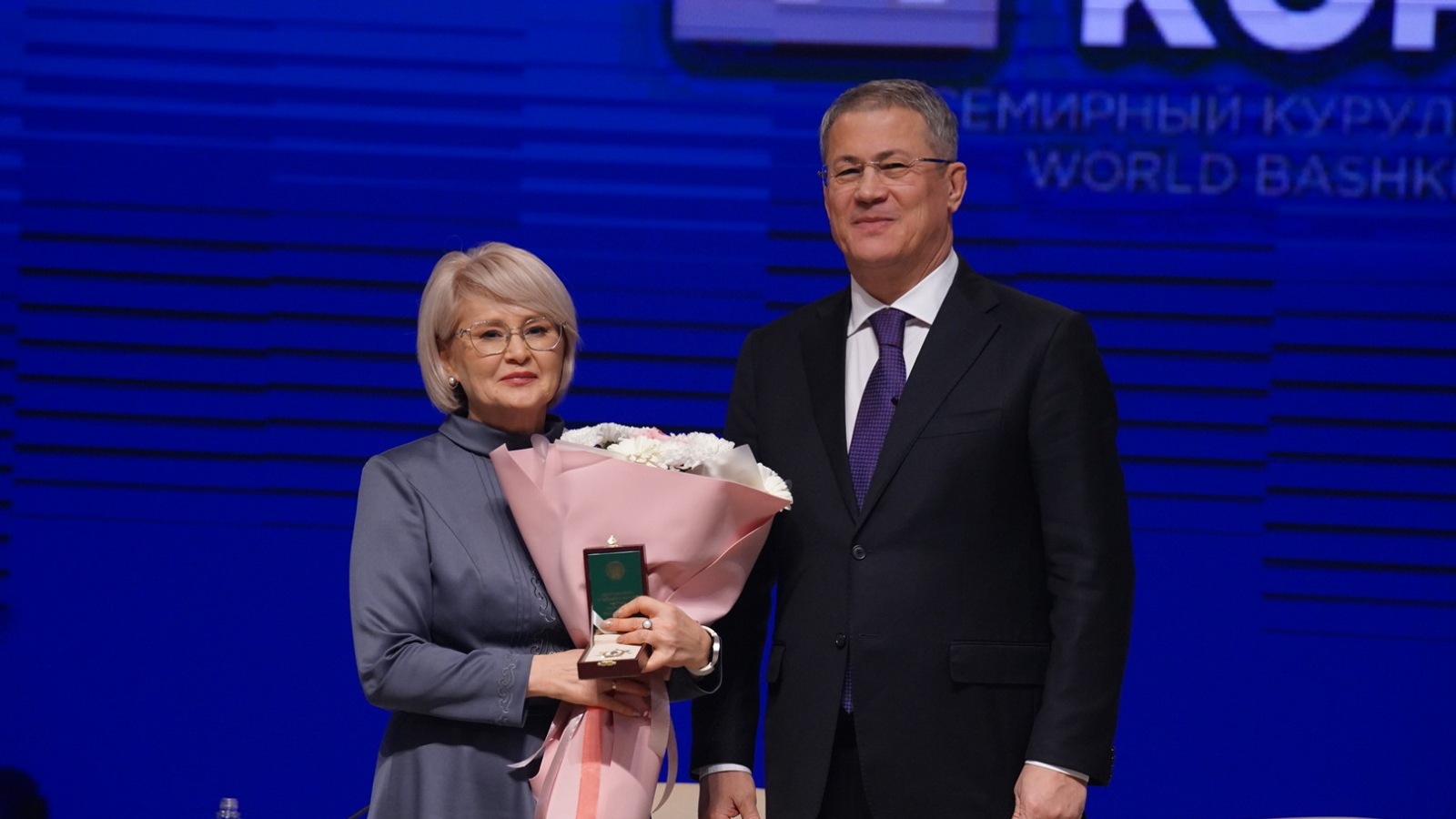 Глава Башкирии Радий Хабиров на пленарном заседании VI Всемирного курултая башкир вручил делегатам государственные награды.