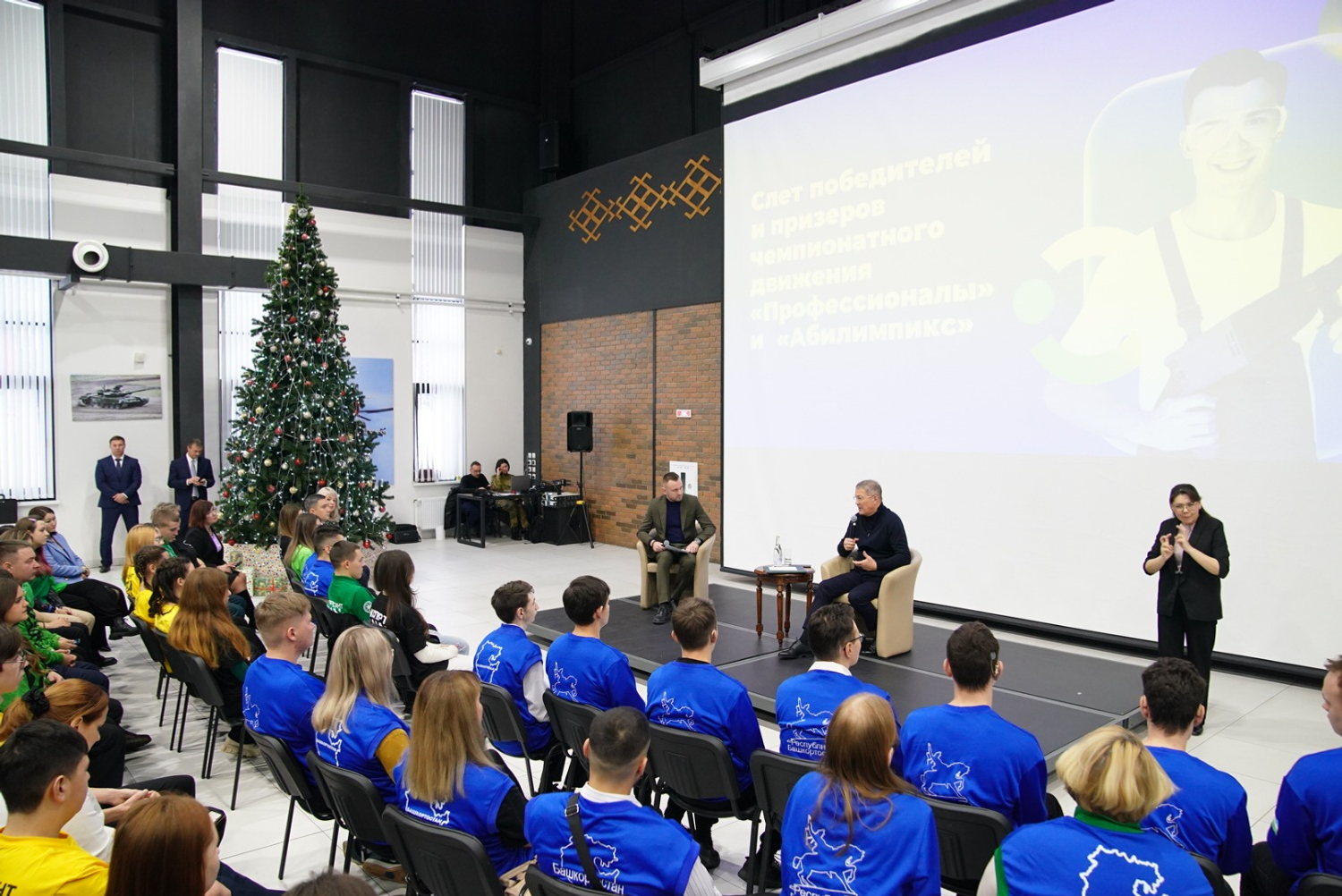 18 декабря Глава Башкортостана Радий Хабиров в Чишминском районе на территории военно-патриотического парка «Патриот» имени Героя России Максима Серафимова встретился с победителями и призерами Всероссийского чемпионатного движения «Профессионалы» и чемпионата «Абилимпикс». Во встрече приняли участие более 80 талантливых ребят со всей республики. В чемпионатном движении республика ежегодно показывает достойные результаты. В этом году по итогам национального чемпионата «Профессионалы» сборная команда республики вошла в пятерку лучших в стране, по итогам национального чемпионата «Абилимпикс» – в десятку лидеров.