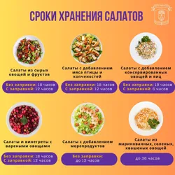 Хранить салаты следует в холодильнике. Оставлять скоропортящиеся продукты на столе более 3 часов не рекомендуется.