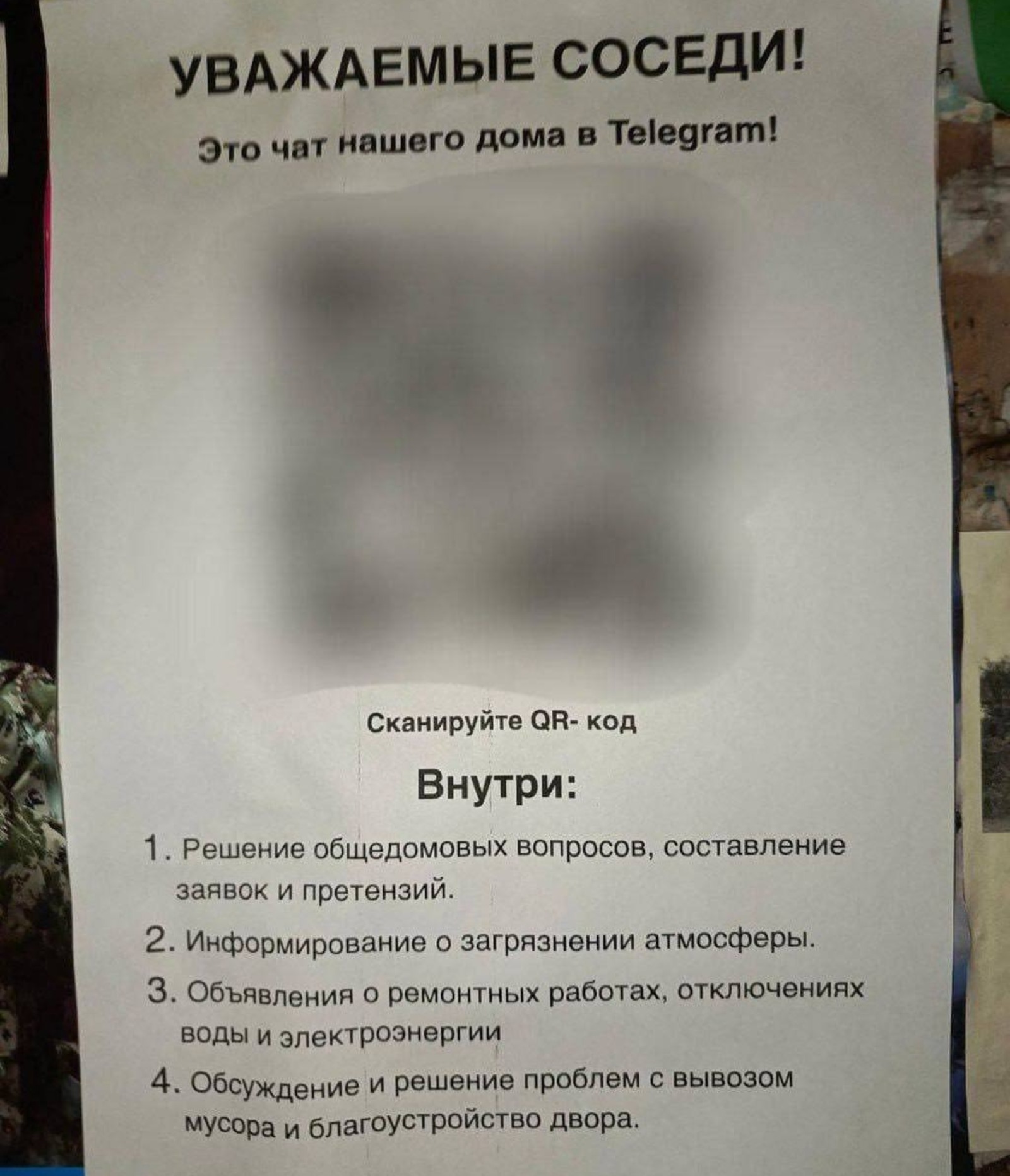 Мошенники начали массово похищать telegram-аккаунты при помощи «домовых чатов». Как сообщается в соцсетях, в подъездах жилых домов неизвестные размещают объявления с QR-кодами, где приглашают вступить в чат с соседями.