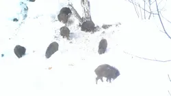«Остаются зимовать около 10-40 кабанов в долине Кужи, часть косуль и лосей. У нас есть кормовые площадки, на которых прикорм начинается в феврале с наступлением многоснежья. Эти места посещают также кабаны. Этим животным особенно тяжело передвигаться в снегу, и к весне после гона истощённые молодые особи и самцы часто погибают», — рассказал он.