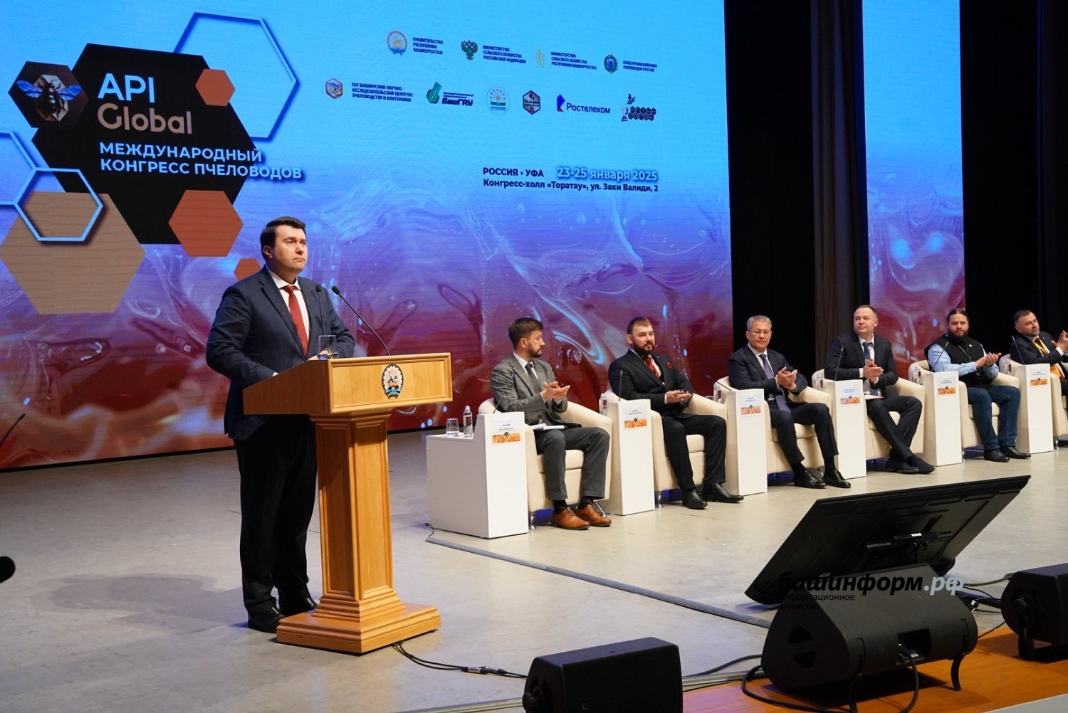 Глава республики Радий Хабиров в своем выступление на пленарном заседании отметил, что Башкортостан неслучайно выбран местом проведения масштабного форума пчеловодов. Многие годы мы – лидеры в стране по производству товарного меда. Наш бренд «Башкирский мёд» давно стал признанной визитной карточкой республики.