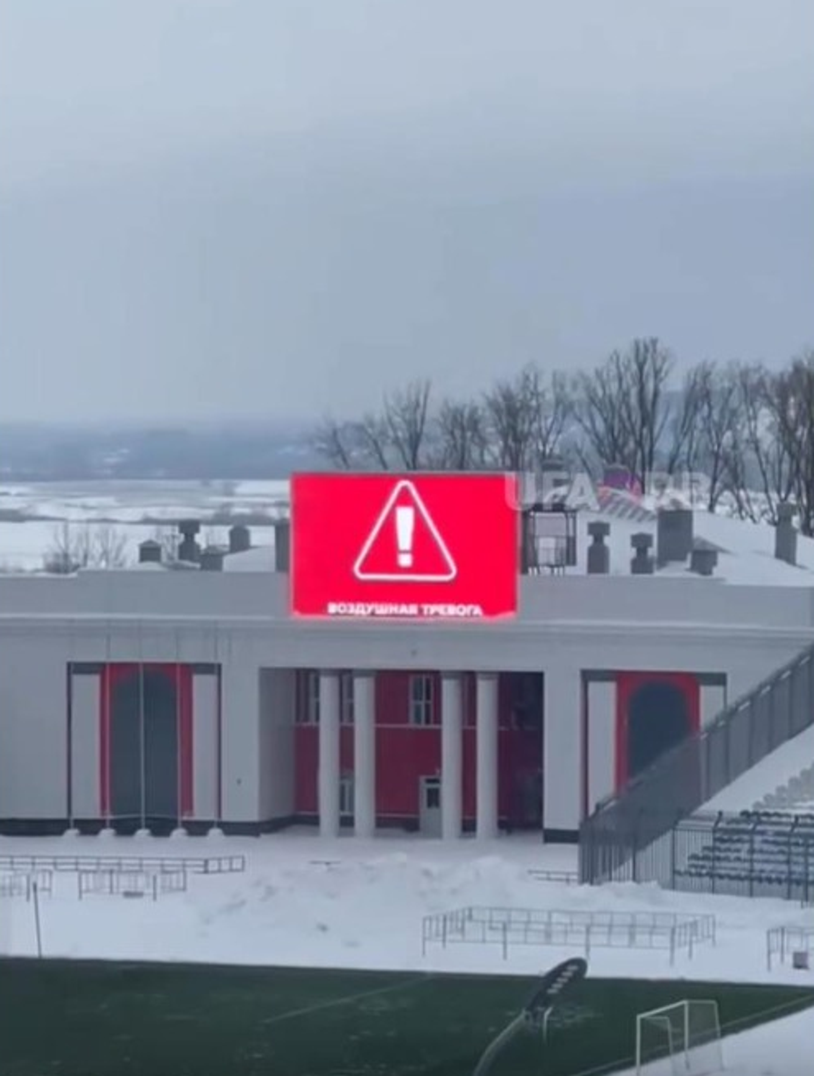 Жителей Уфы встревожило красное табло c надписью «Воздушная тревога» на стадионе «Нефтяник». Местные жители сняли на видео, как на территории стадиона несколько минут работал монитор с предупреждением. Они обратились в 112, но там им не смогли помочь с разъяснением ситуации.