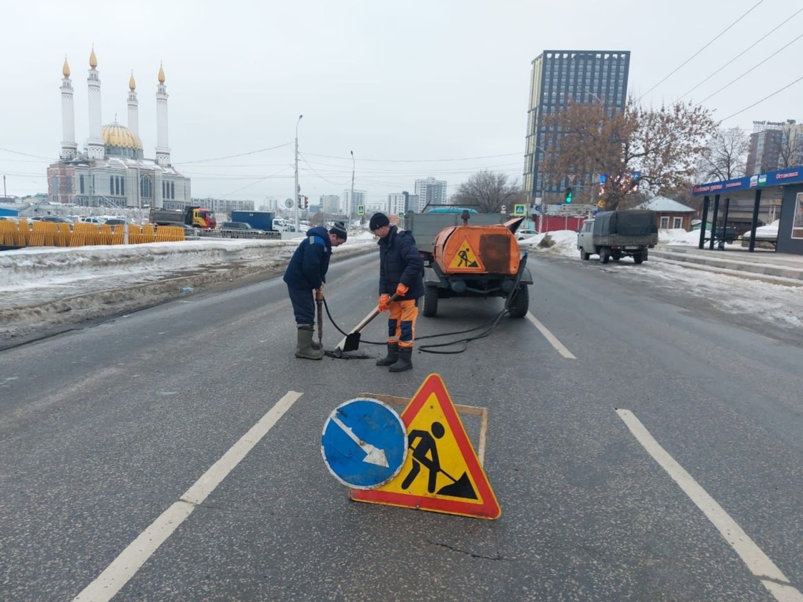 За неделю аномального тепла в Уфе открылся асфальт, и коммунальные службы приступили к ямочному ремонту. Как пояснили в мэрии, выбоины и ямы выявляются в ходе ежедневного объезда территорий.