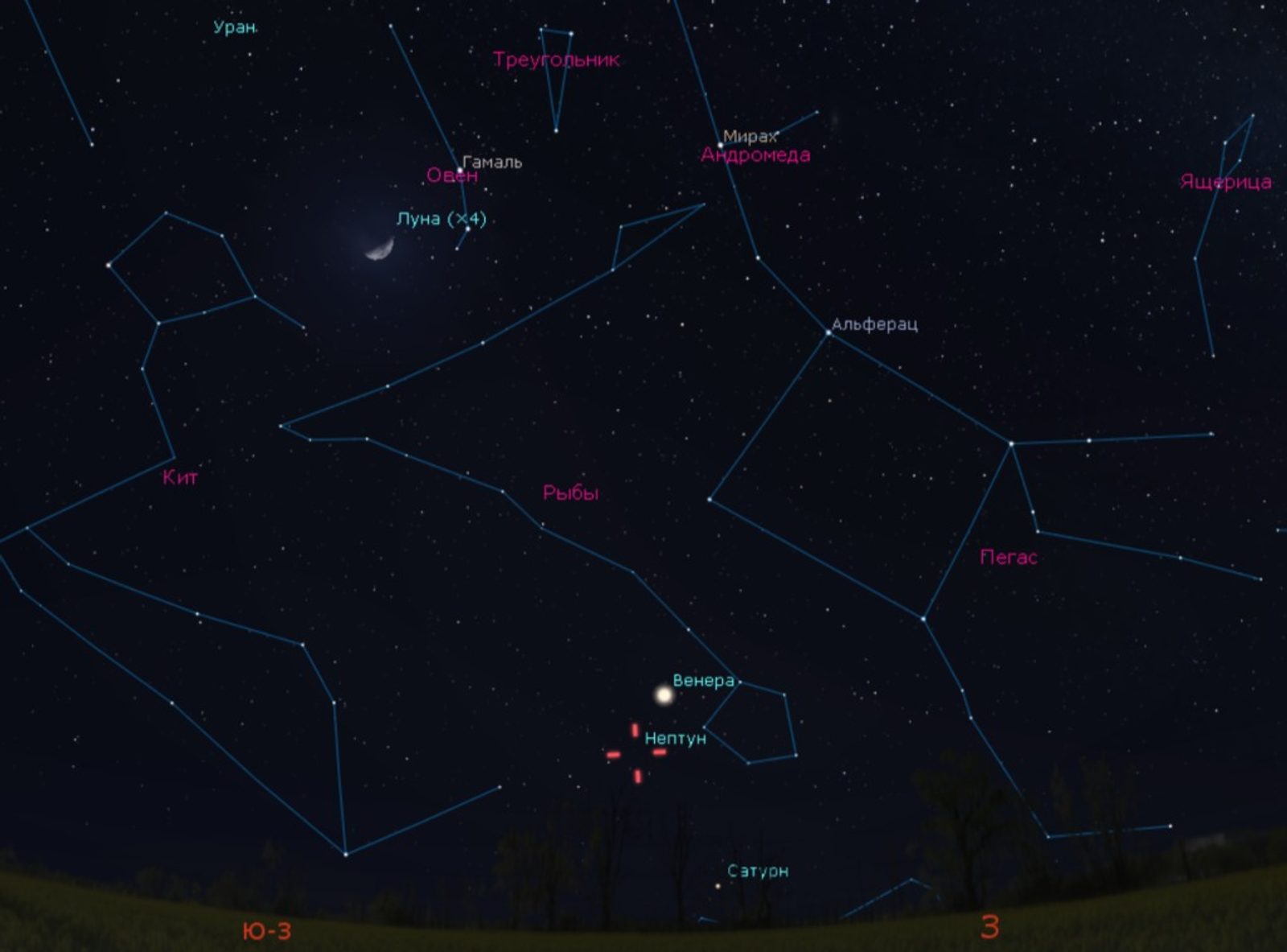 «Венера выглядит как очень яркая, самая яркая „звезда“ на вечернем небе и её очень легко найти. А вот чтобы увидеть Нептун, понадобится телескоп. Он невооруженным глазом не виден», — отметили в планетарии.