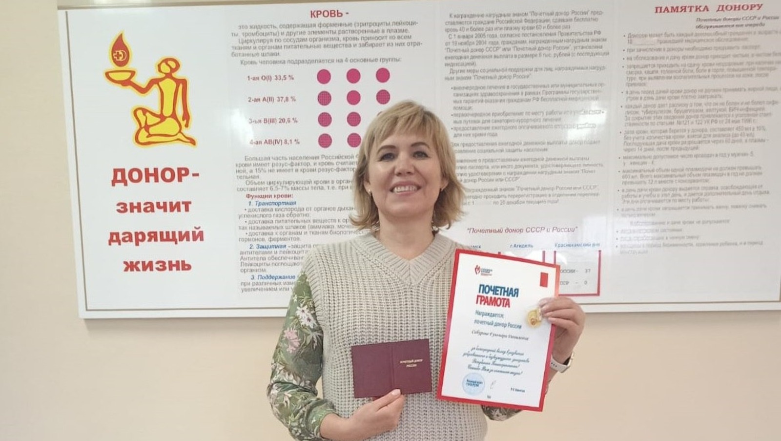 Ленара Иванова рассказала, что одна из почетных доноров России Гульнара Сабурова — сотрудница филиала Республиканского центра социальной поддержки населения по городу Нефтекамску. Женщина регулярно сдает плазму крови уже больше 10 лет, тем самым спасая жизни других людей. Такое продолжение получила её профессиональная деятельность, тоже связанная с помощью людям — оформлением выплат и льгот, поддержкой в трудной жизненной ситуации. Более того, неравнодушная сотрудница вдохновила и других коллег на донацию, показывая на своем примере, что донорство — это не только почетно, но и полезно для организма.