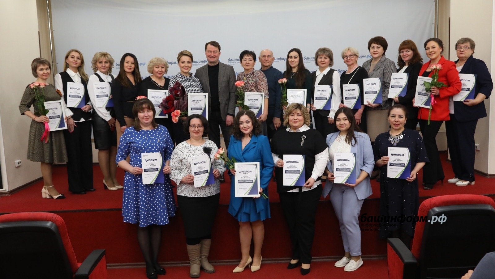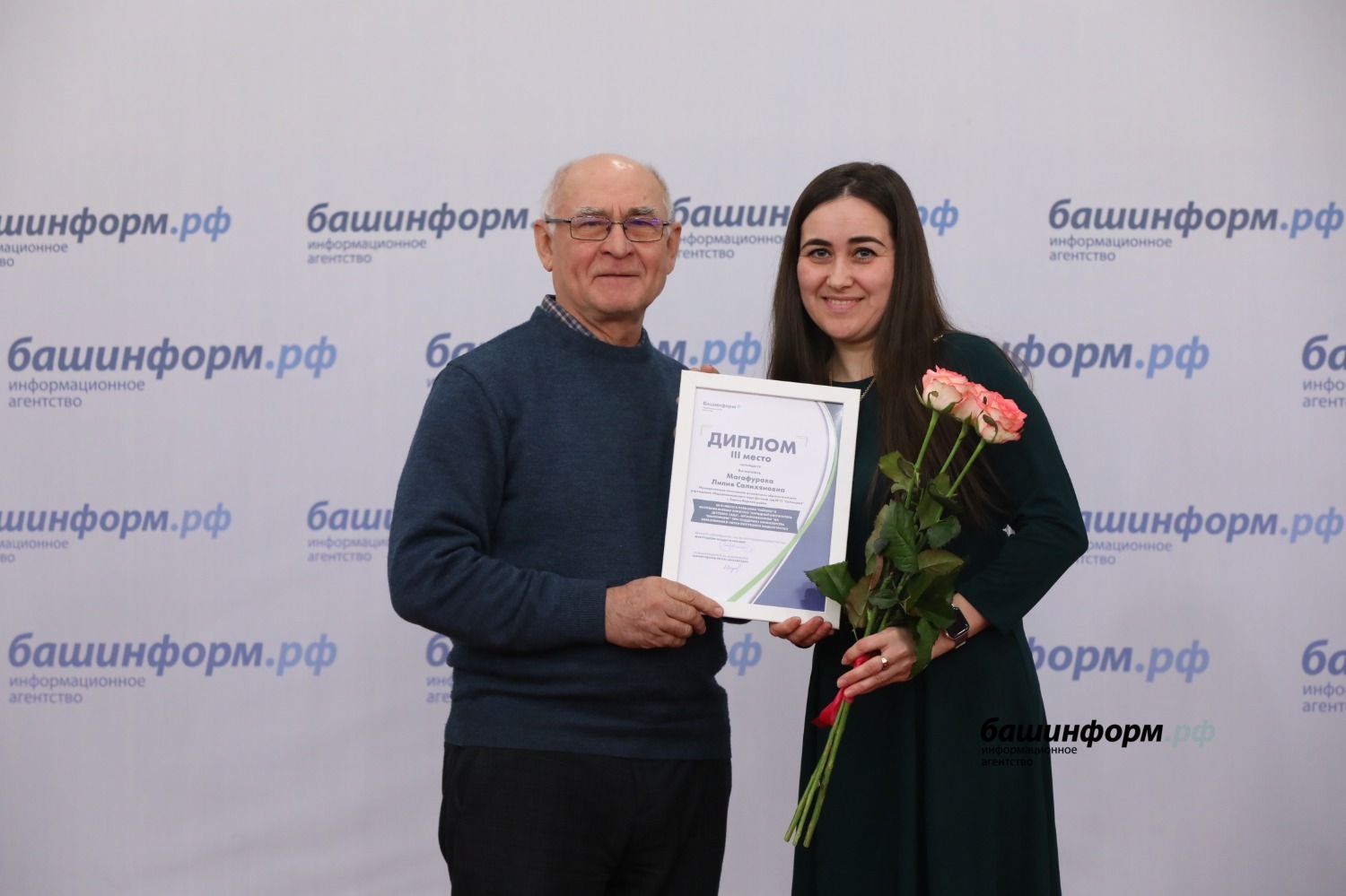 В торжественной церемонии награждения приняли участие первый заместитель министра образования и науки Башкирии Светлана Антипина, исполняющая обязанности генерального директора ИА «Башинформ» Диля Сагитова, главный редактор информационного агентства Руслан Шарафутдинов, а также литературный редактор информагентства Алик Шакиров.