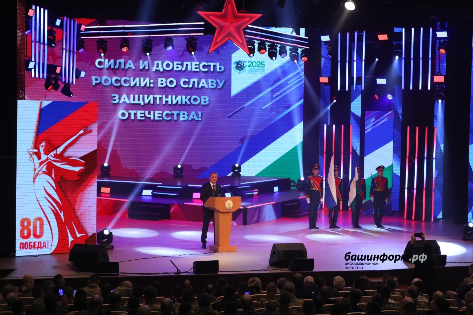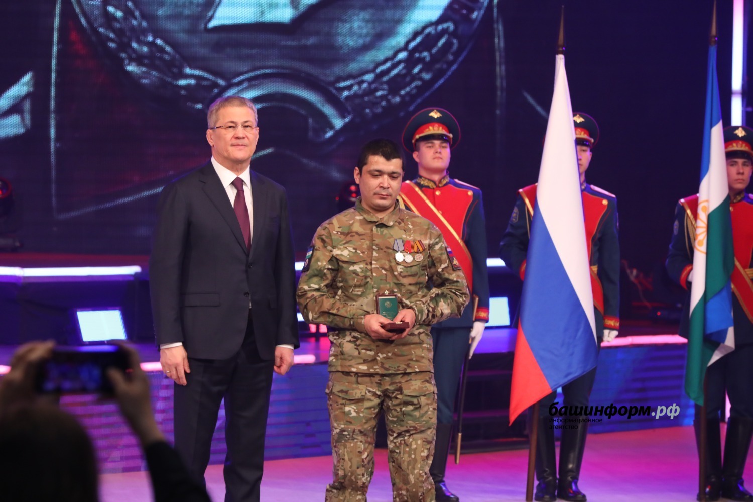 После завершения торжественного собрания состоялся праздничный концерт в честь Дня защитника Отечества.