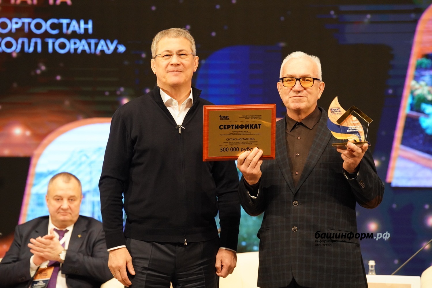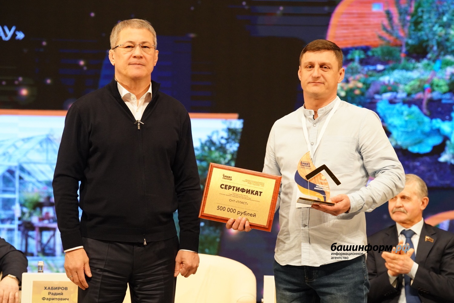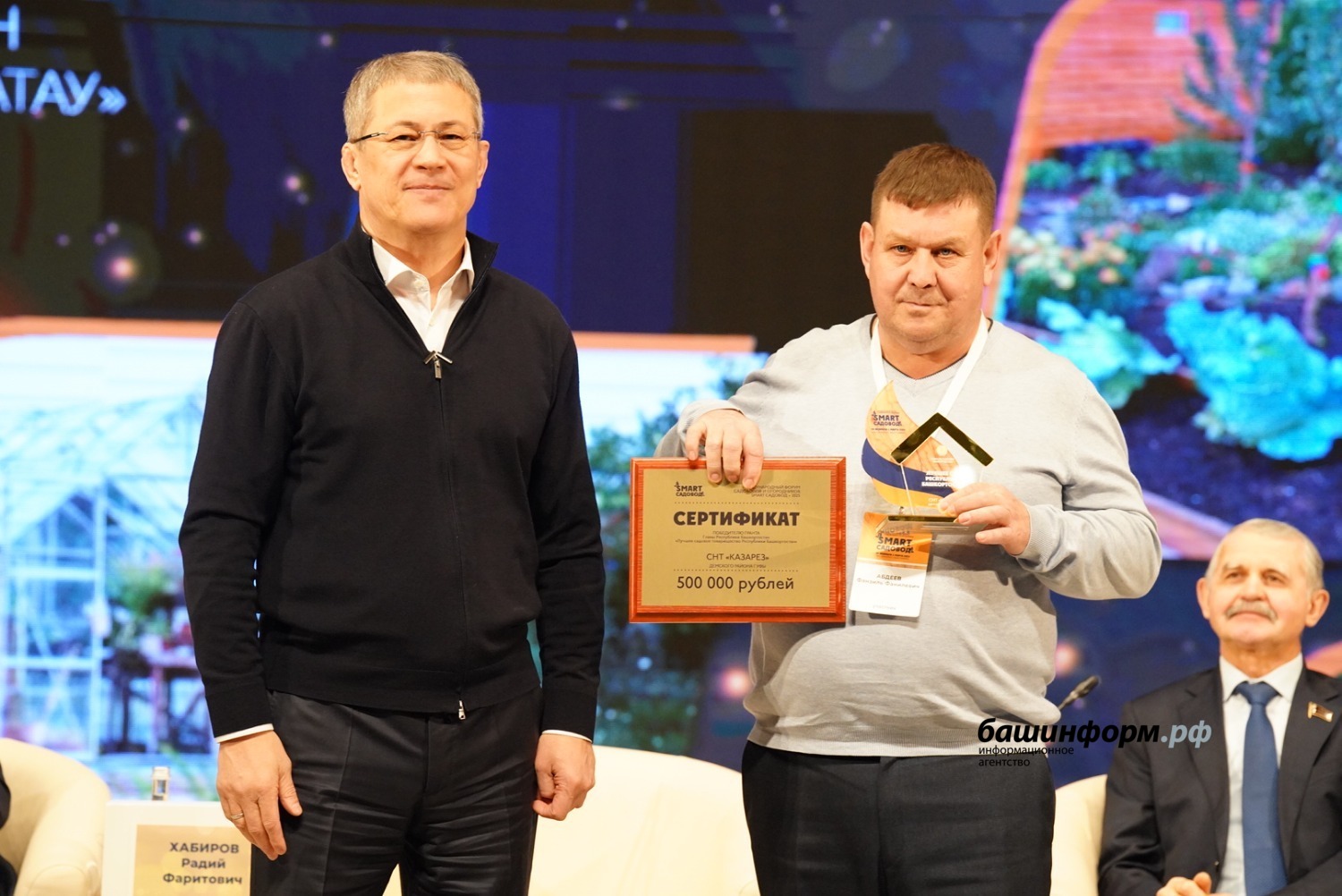 Глава Башкирии Радий Хабиров вручил сертификаты на гранты руководителя республики лучшим садовым некоммерческим товариществам. Торжественная церемония награждения состоялась в рамках IV международного форума «СМАРТ-садовод» на площадке столичного конгресс-холла.