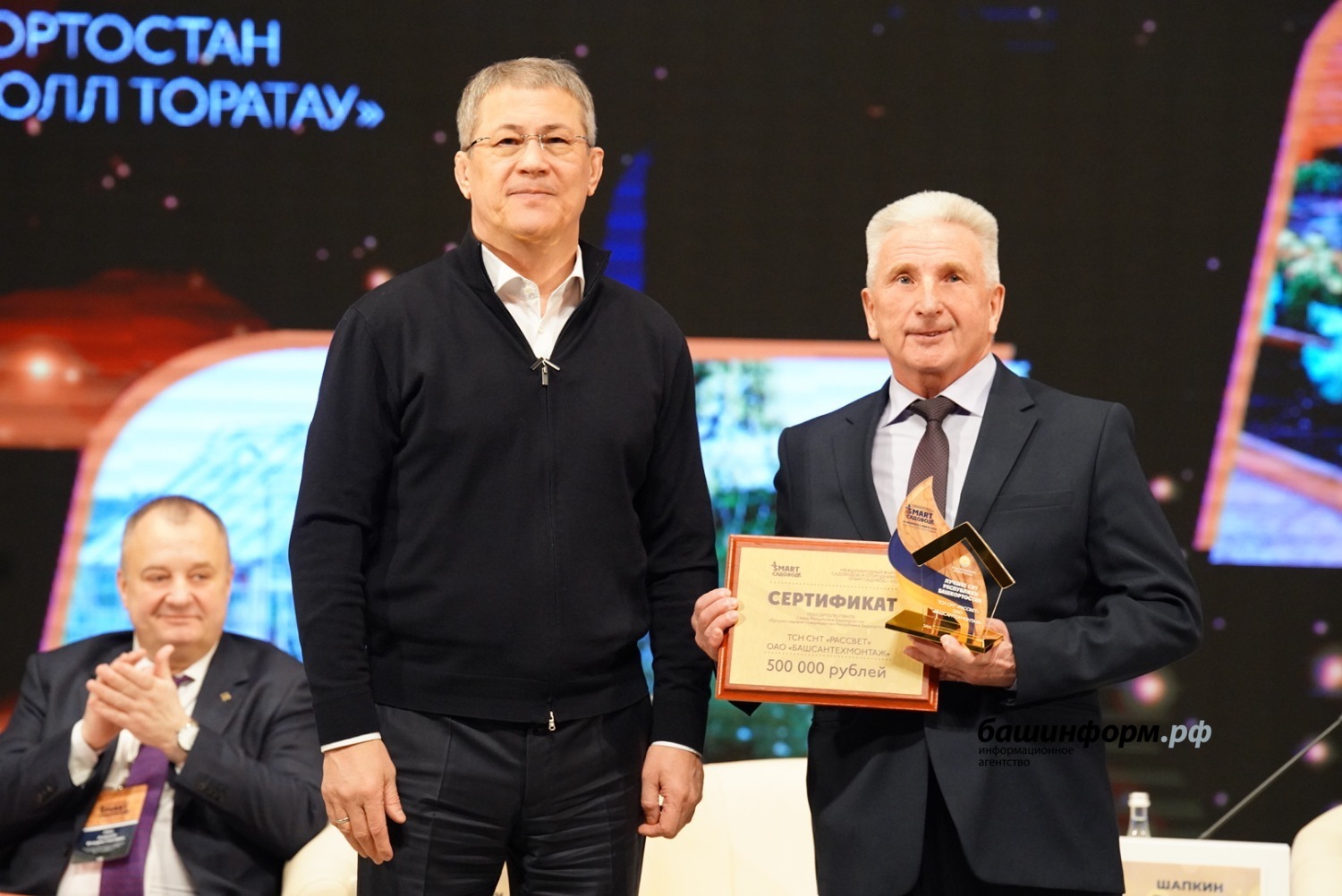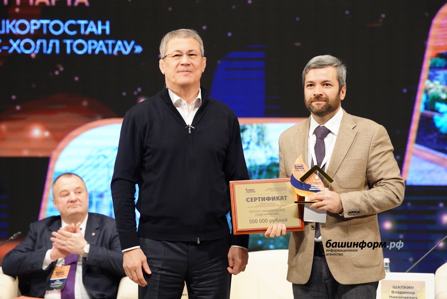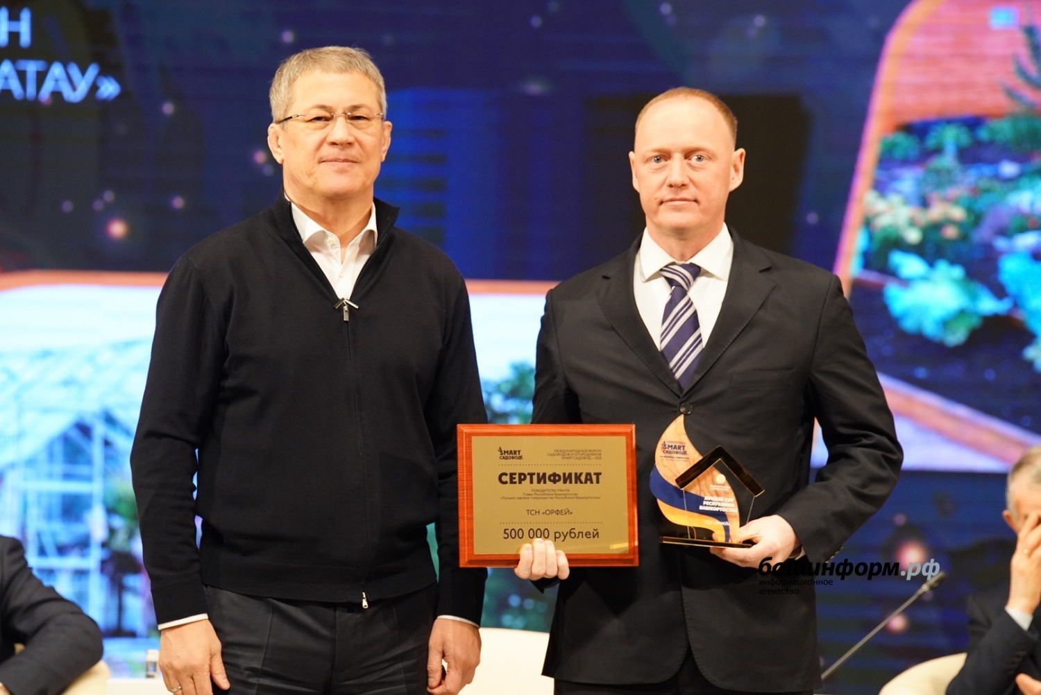 Глава Башкирии Радий Хабиров вручил сертификаты на гранты руководителя республики лучшим садовым некоммерческим товариществам. Торжественная церемония награждения состоялась в рамках IV международного форума «СМАРТ-садовод» на площадке столичного конгресс-холла.