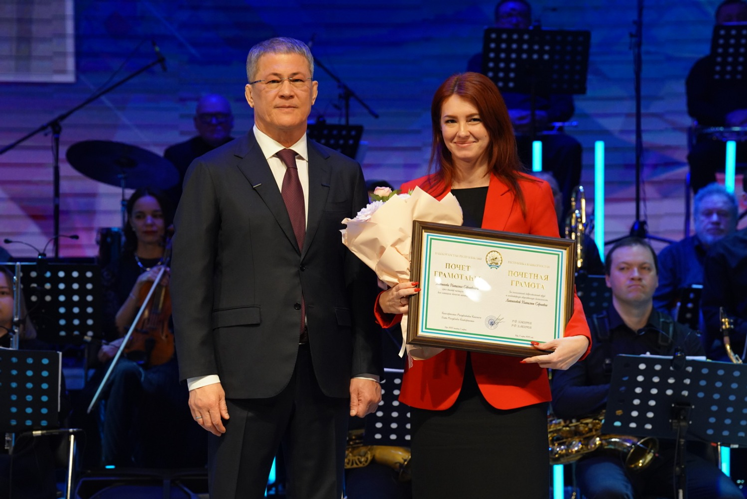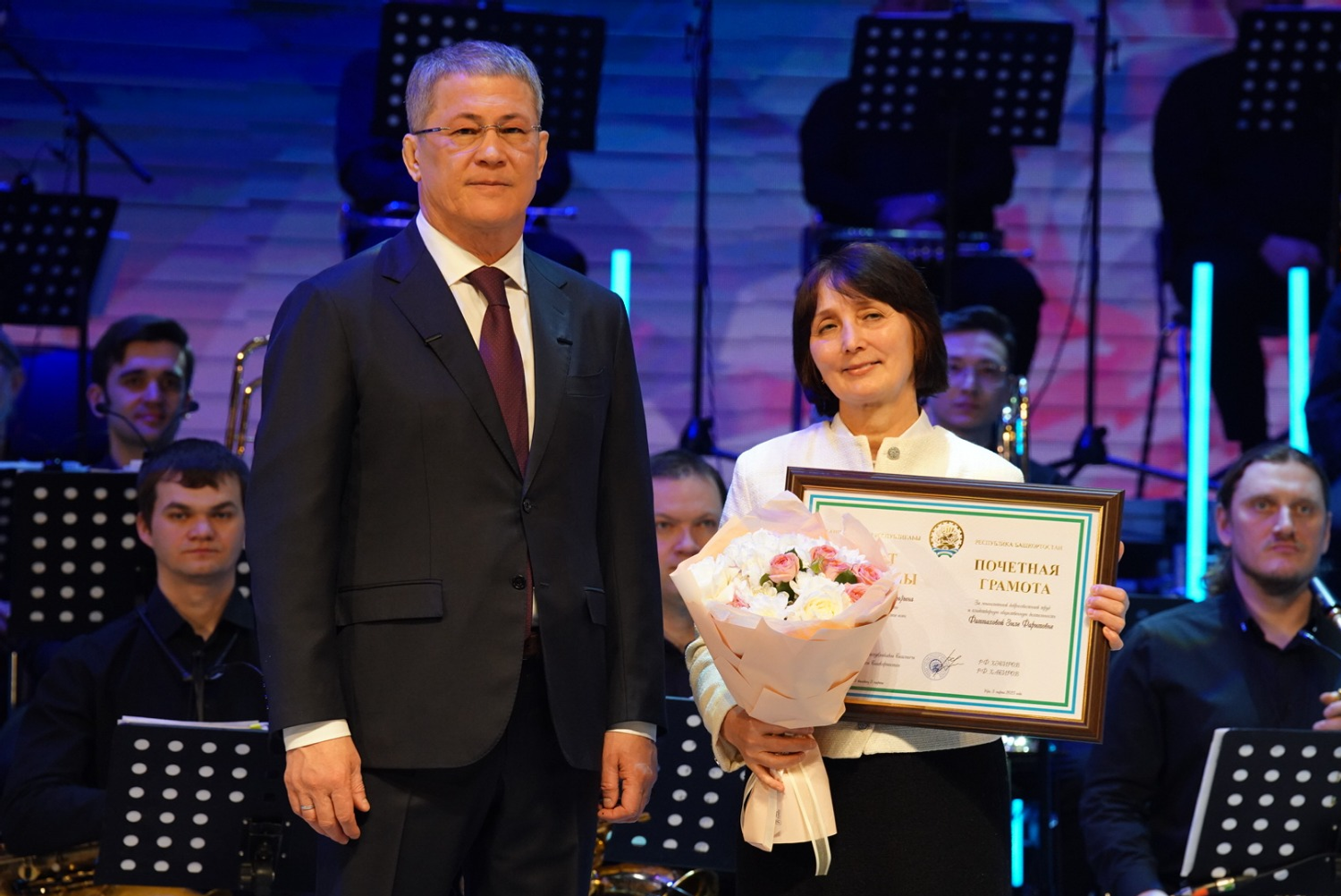 Орденом «За заслуги в культуре и искусстве» указом Президента России награждена актриса Уфимского государственного татарского театра «Нур» Савия Сираева. Медаль Луки Крымского из рук Главы республики получили медсестра Республиканской клинической инфекционной больницы Юнира Большова и врач УЗИ РКБ имени Куватова Дилара Рахмангулова. Почетного звания «Заслуженный артист Российской Федерации» удостоена ведущая балерина Башкирского государственного театра оперы и балета Гульсина Мавлюкасова. Кавалером ордена «За заслуги перед Республикой Башкортостан» стала главный научный сотрудник Института биохимии и генетики Эльза Хуснутдинова.