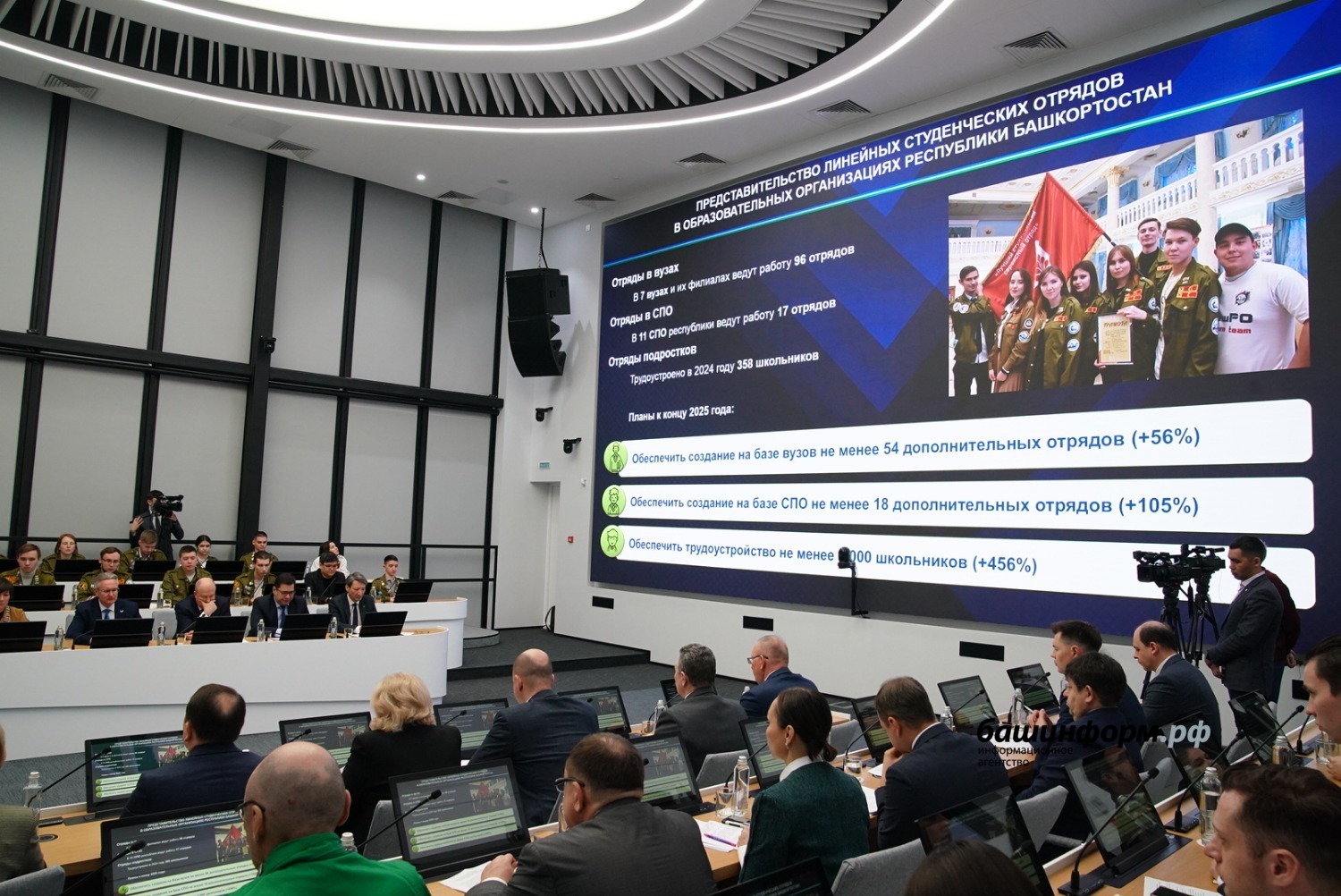Председатель правления Башкортостанского регионального отделения молодёжной общероссийской общественной организации «Российские студенческие отряды» Ирина Сухарева поблагодарила руководство республики за поддержку движения и рассказала, что за 10 лет трудоустроили более 27 тысяч студентов. Они получают профессиональные навыки и формируют кадровый резерв для реального сектора экономики. Так, за 2022–2024 годы бойцы студотрядов Башкортостана заработали более 1,2 млрд рублей.