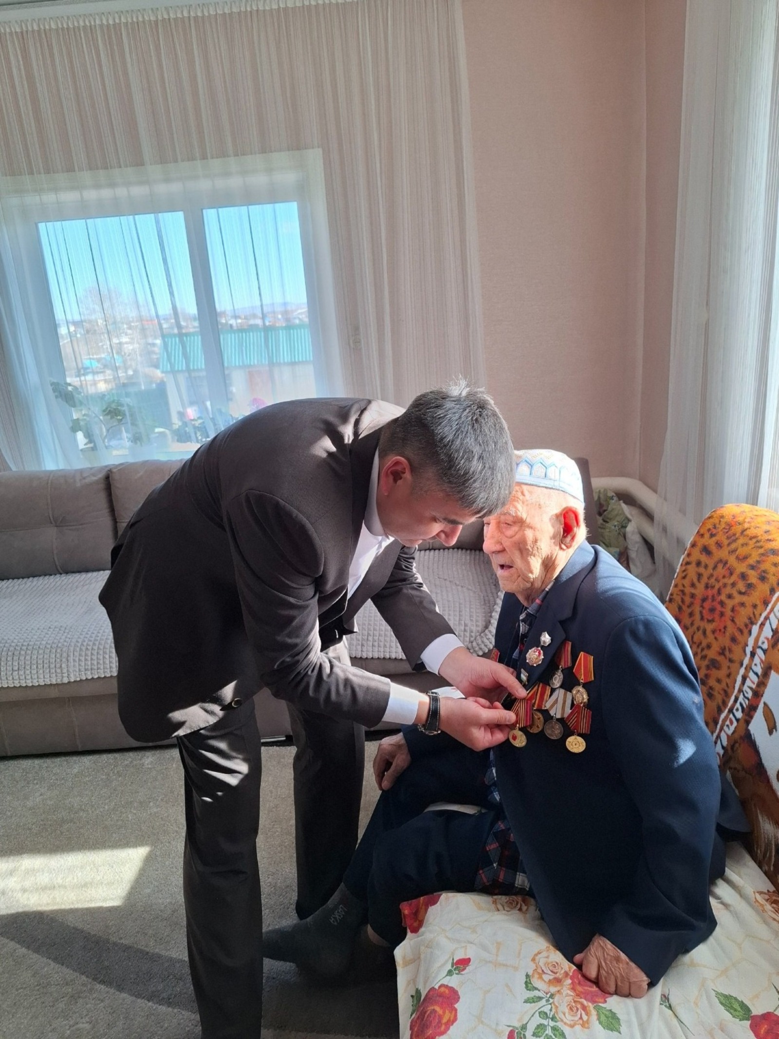Глава администрации Баймакского района Азамат Идрисов вручил ветерану Гайзулле Мухаметовичу Аблюзину юбилейную медаль «80 лет Победы в Великой Отечественной войне 1941–1945 годов».