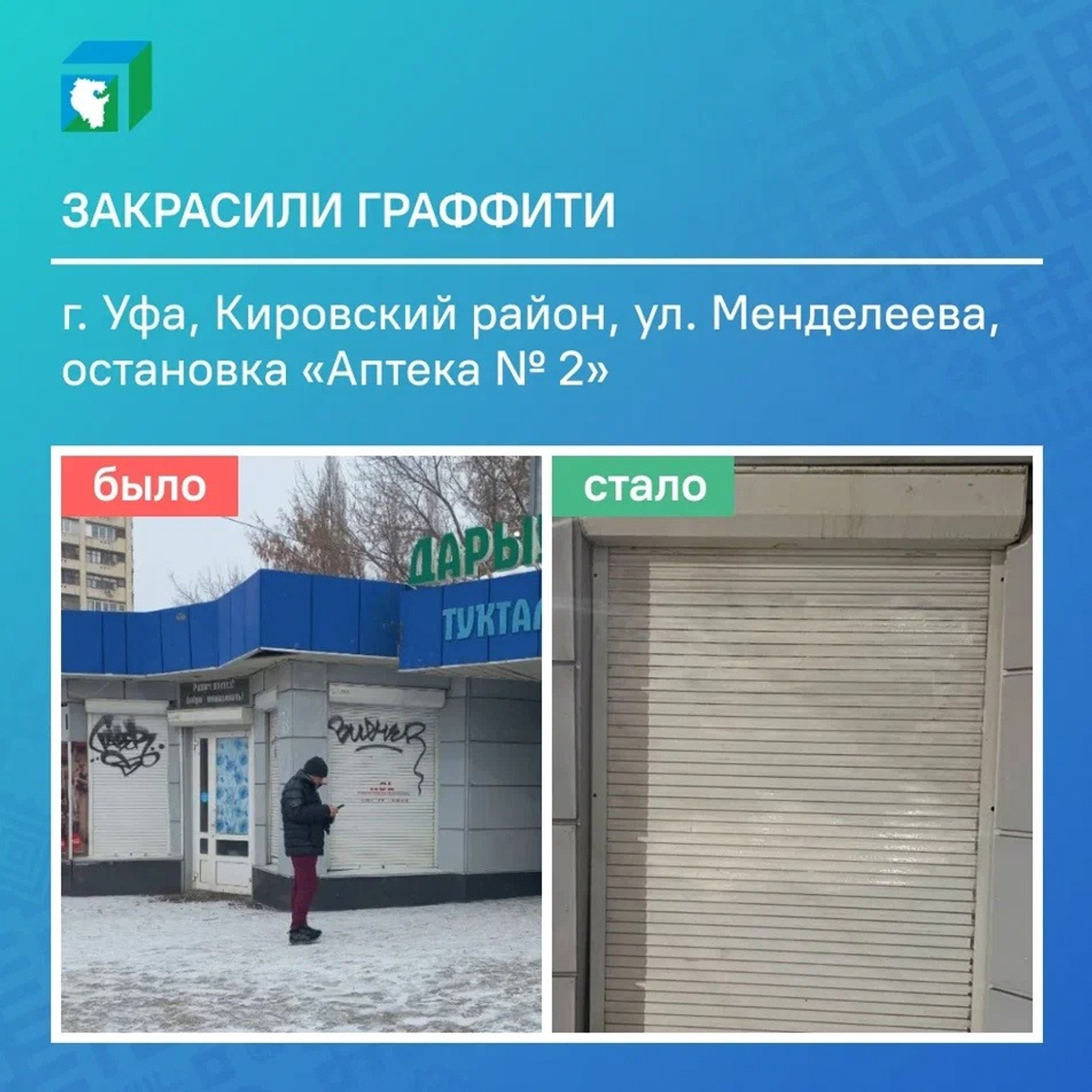 После обращения вопрос на контроль взяли местные власти и рисунки на объекте по улице Менделеева закрасили. Также специалисты проверят и остальные остановочные пункты района.